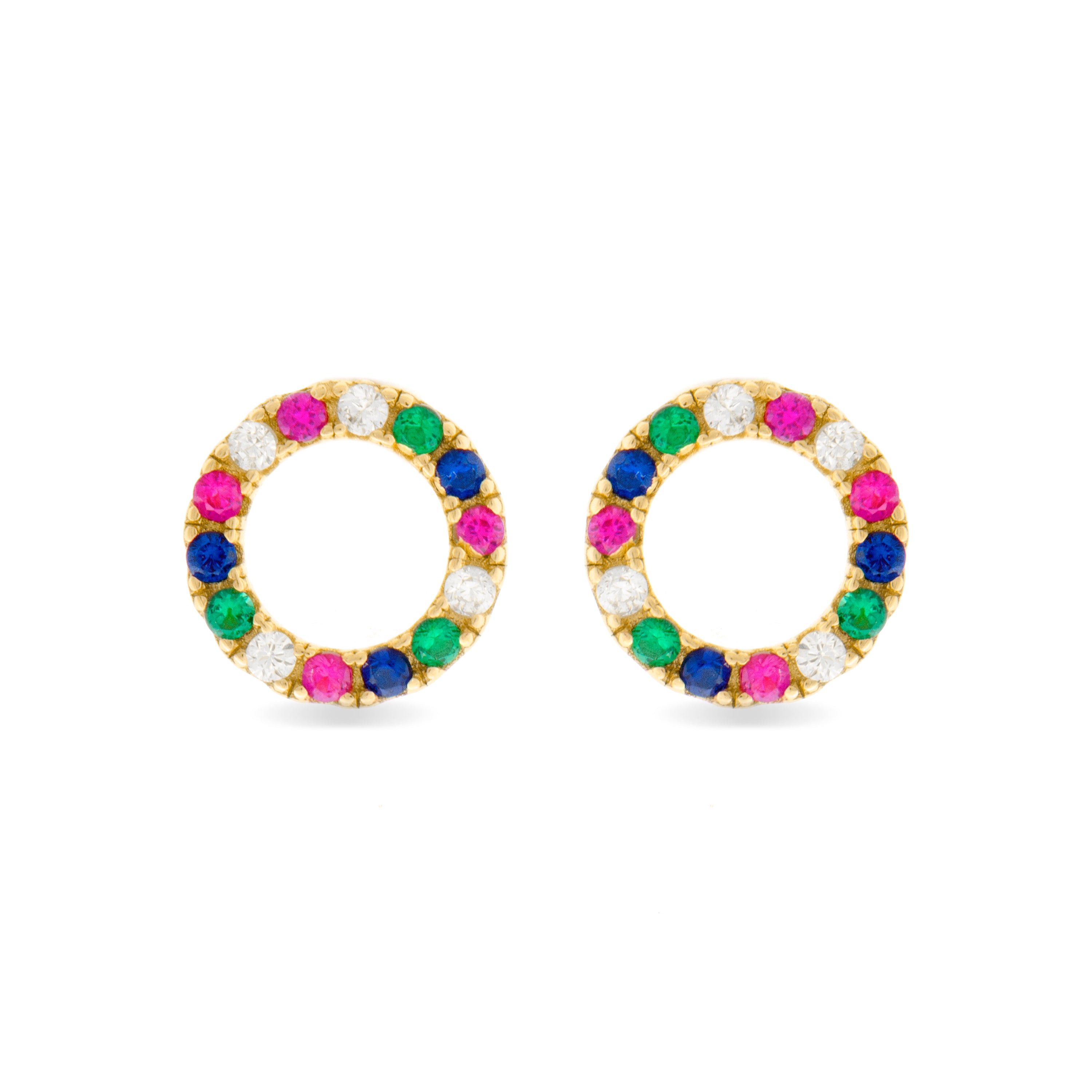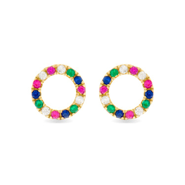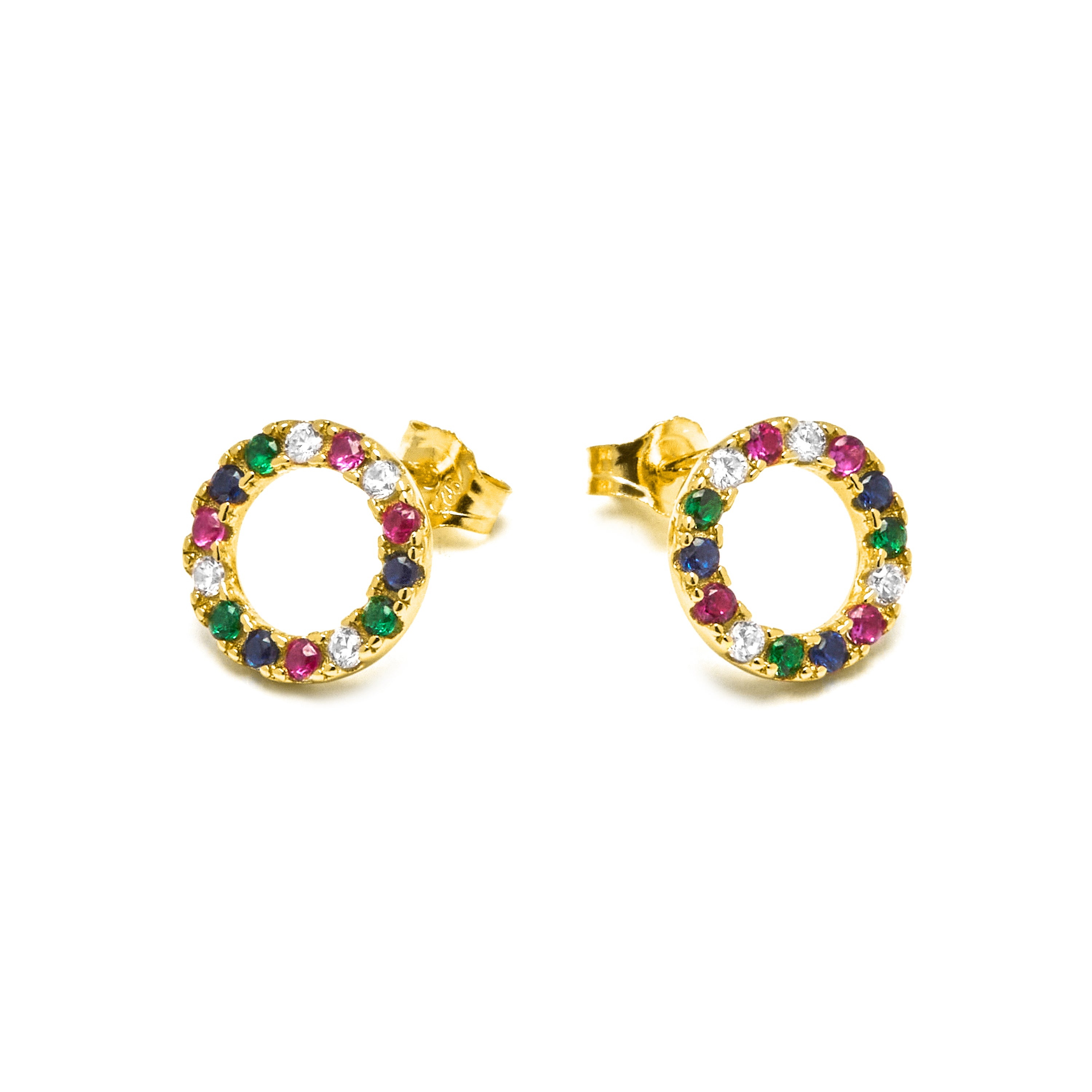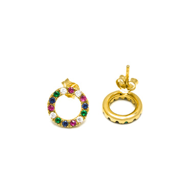 Pendientes de Plata de Ley 925 con Circonita Multicolor acabados en oro amarillo 18K - Machi