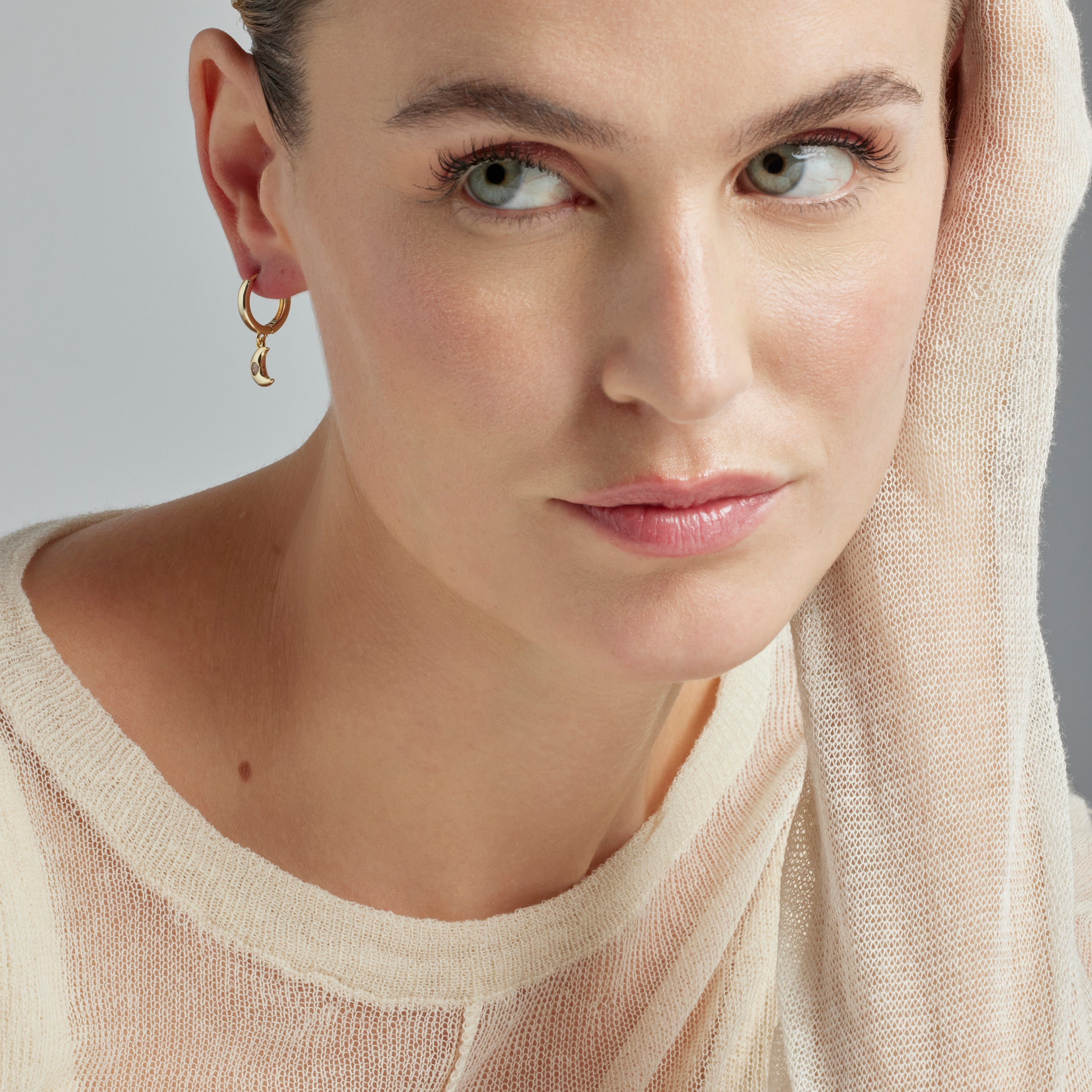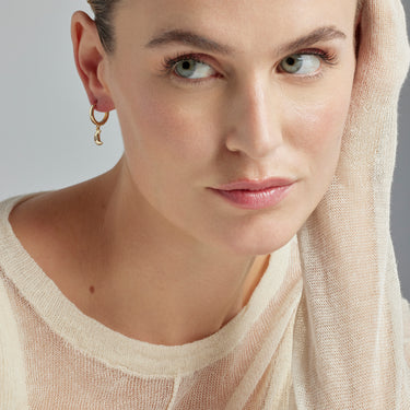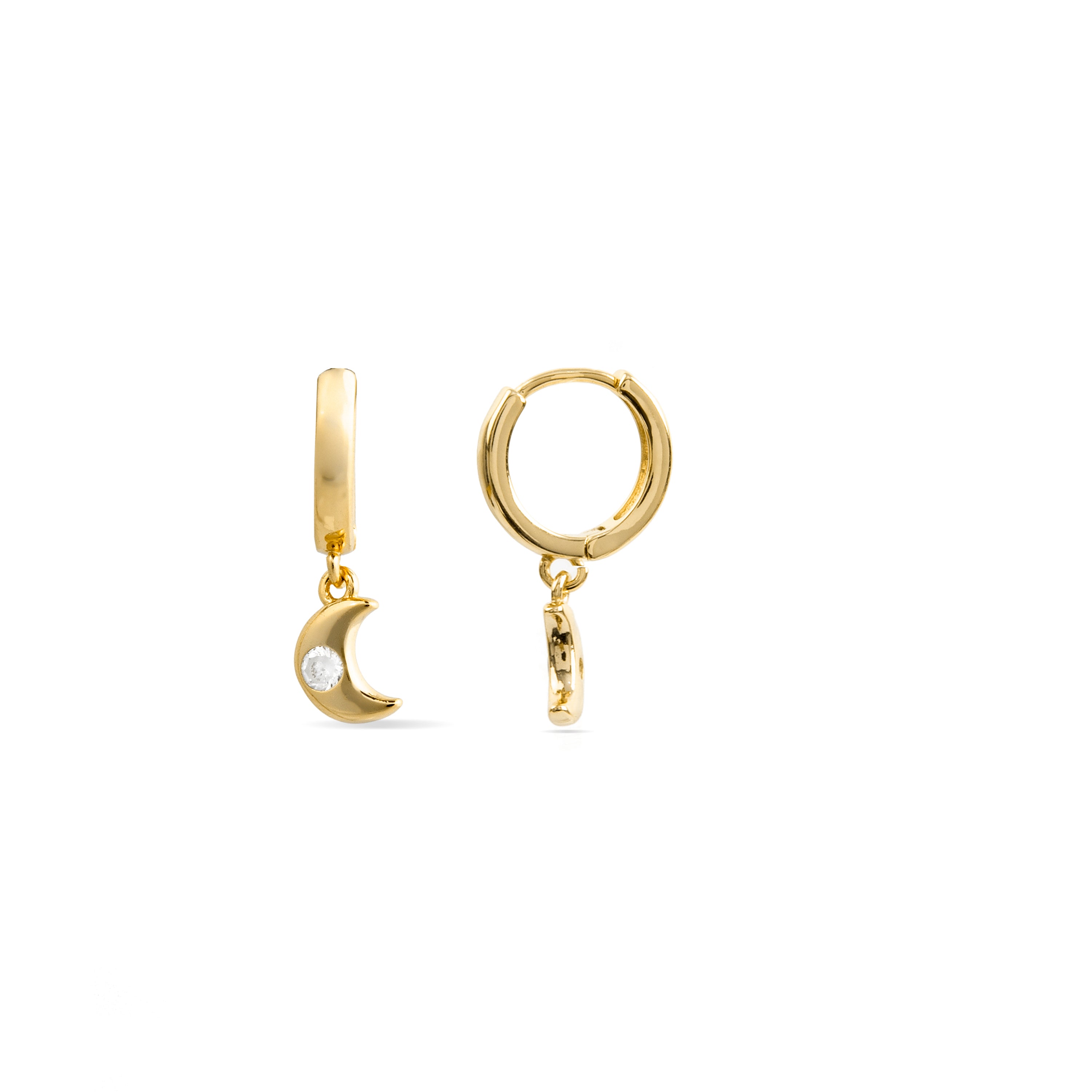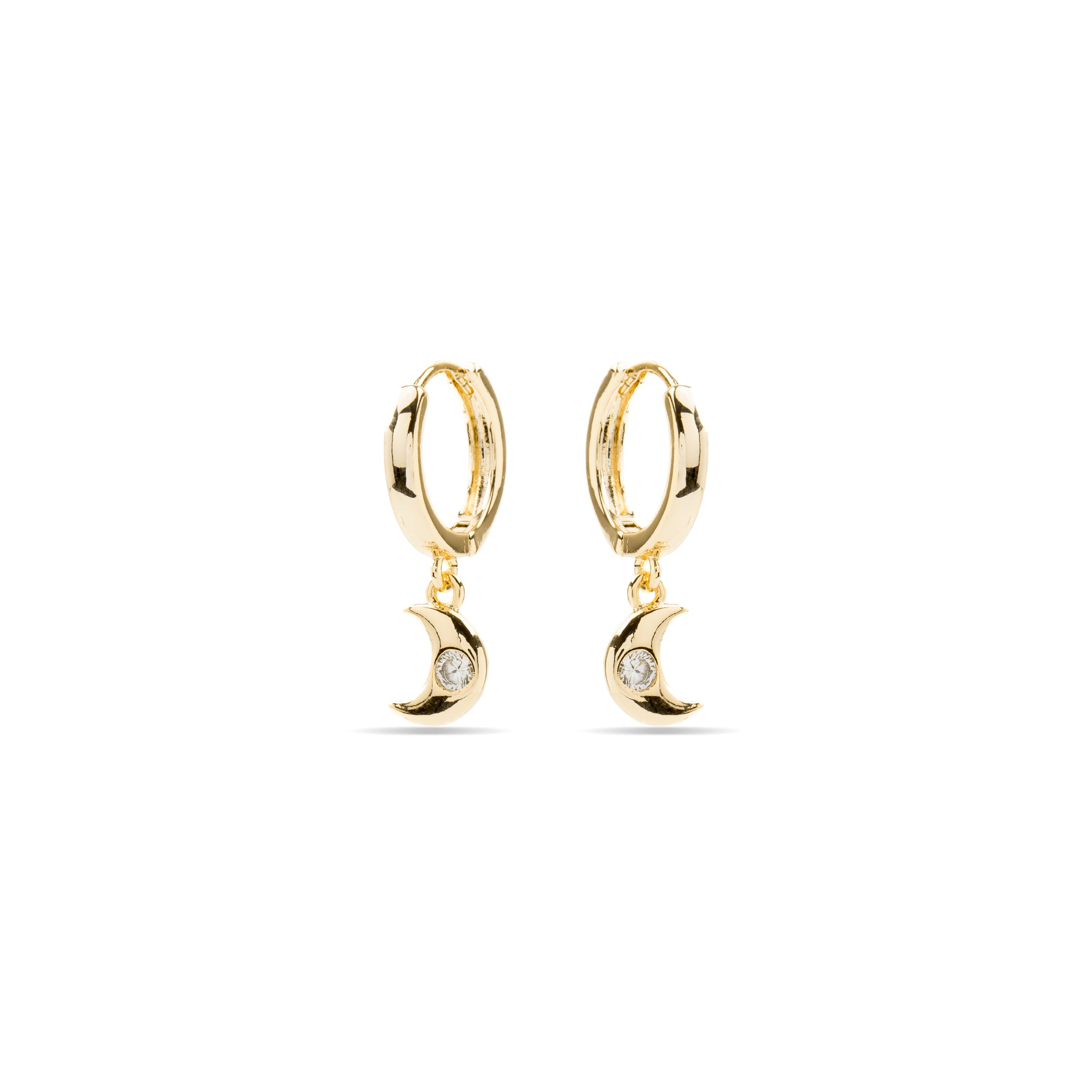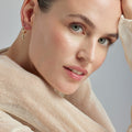 Pendientes Nekiel de Circonita Brillante acabados en oro amarillo de 18k. África Basic encarna la sencillez refinada, piezas atemporales con líneas suaves y el brillo adicional de las circonitas. Joyas básicas sin pretensiones que son perfectas para el uso diario, pero también pueden funcionar en ocasiones especiales.