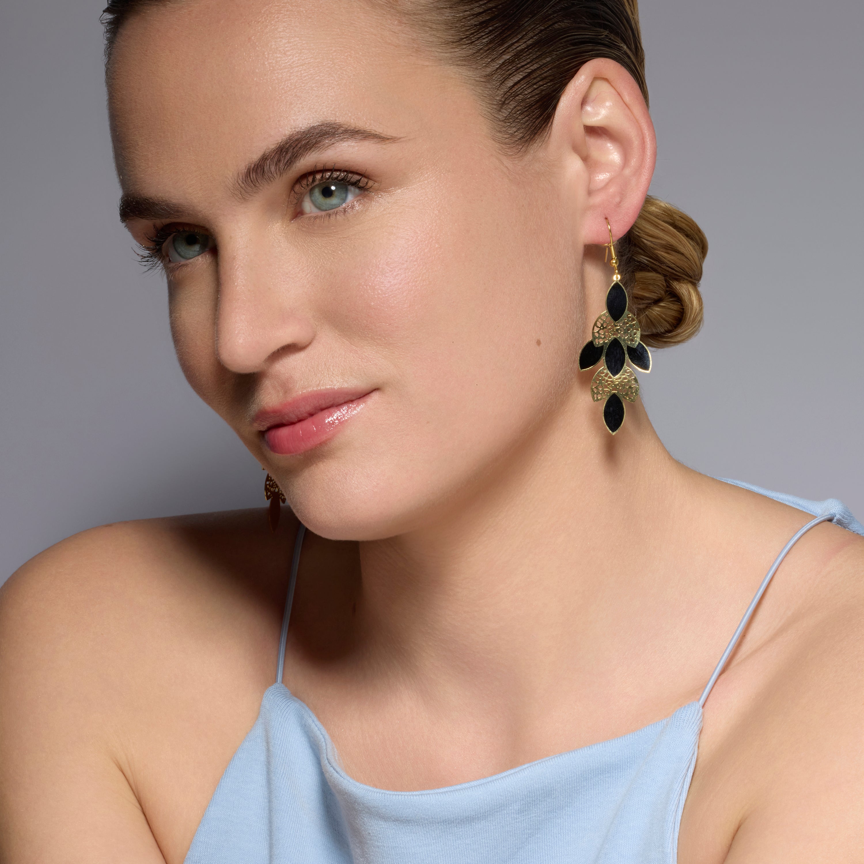 Pendientes acabado oro amarillo de 18k y Lacado Negro - Zamku