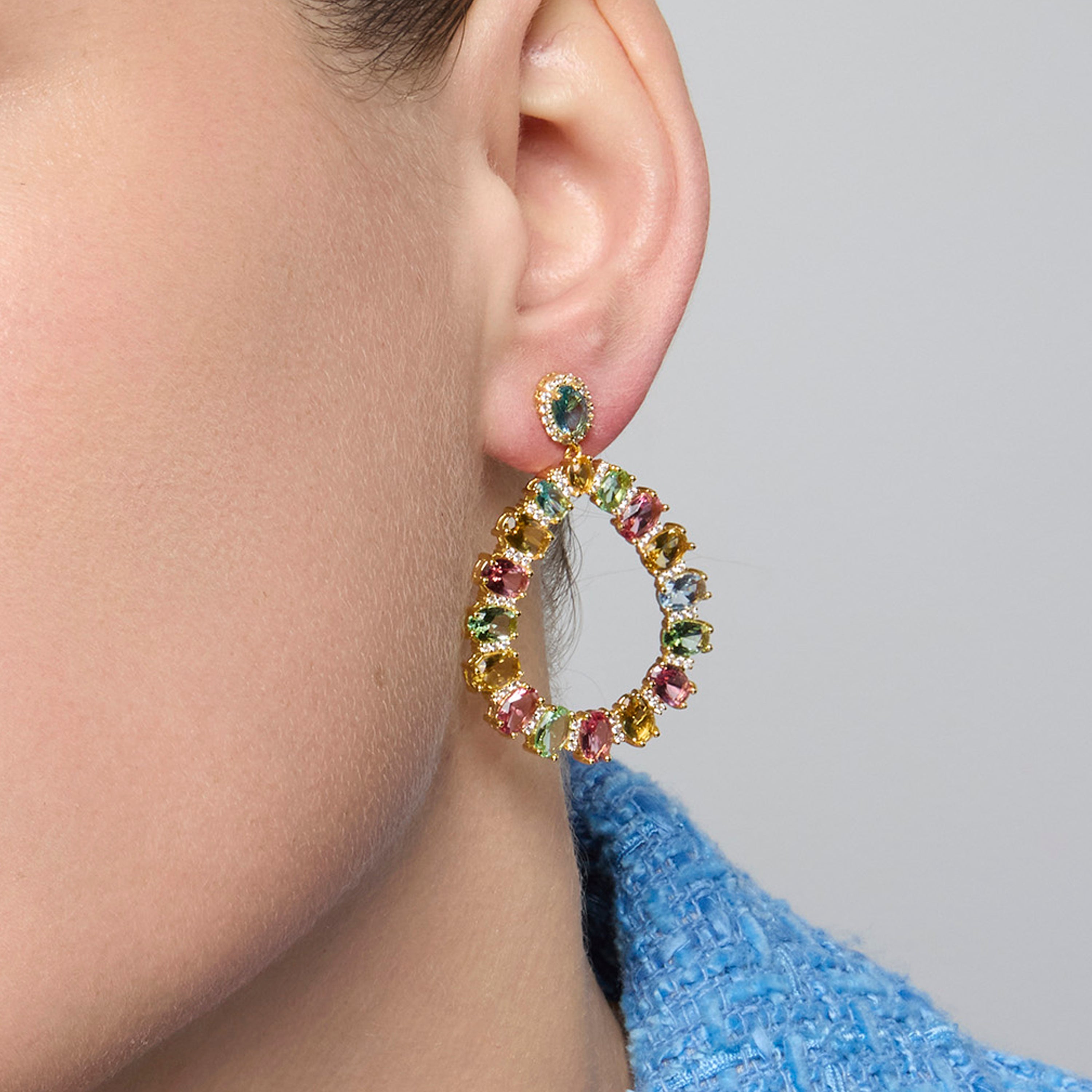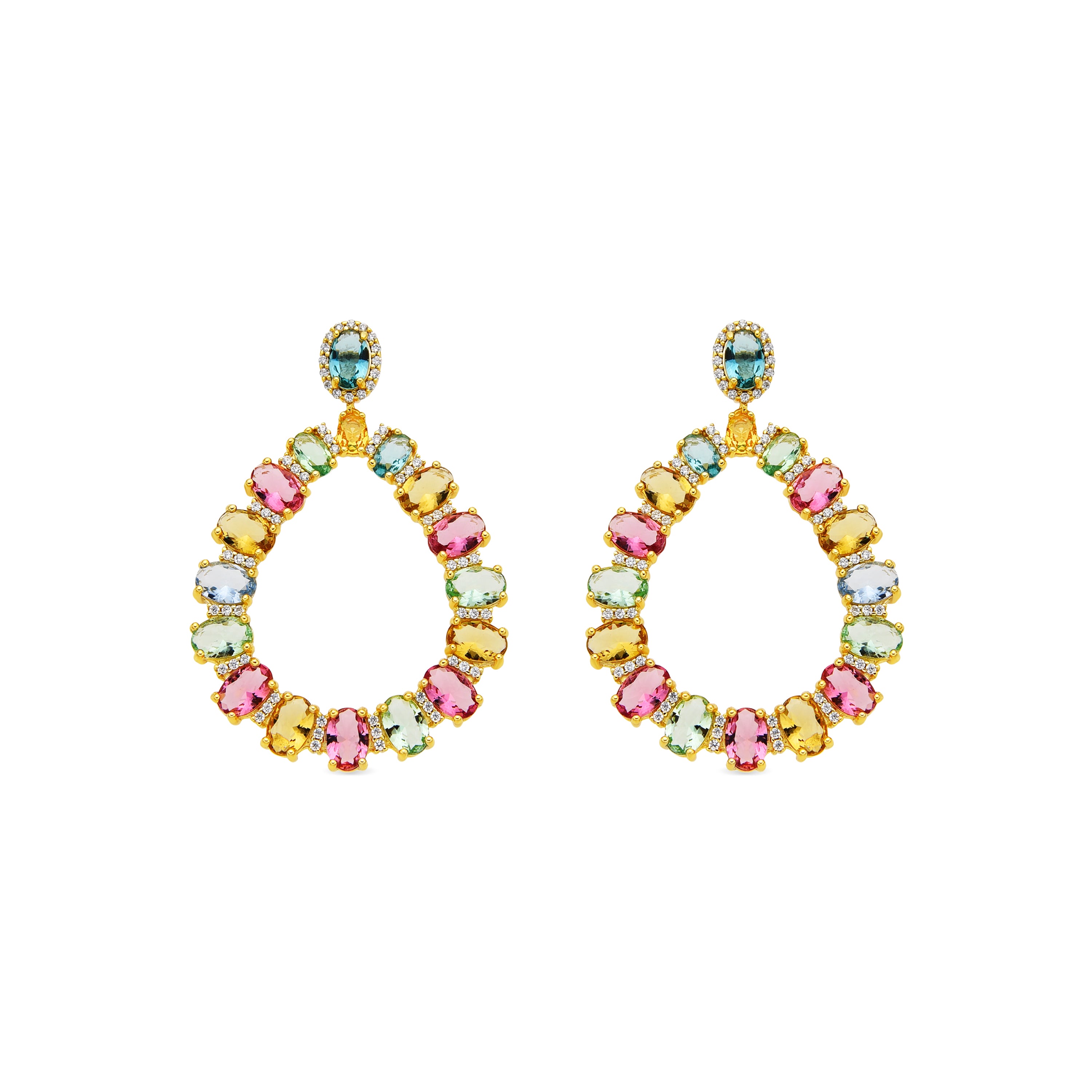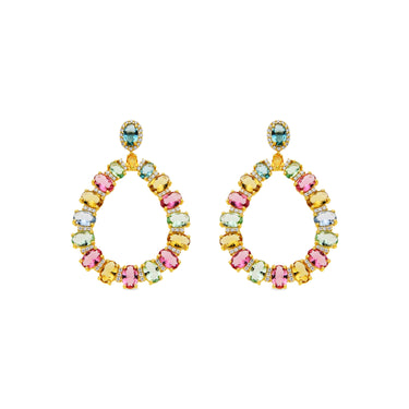 Pendientes Chaky de Plata de Ley 925 y Circonita Multicolor acabado oro amarillo de 18k