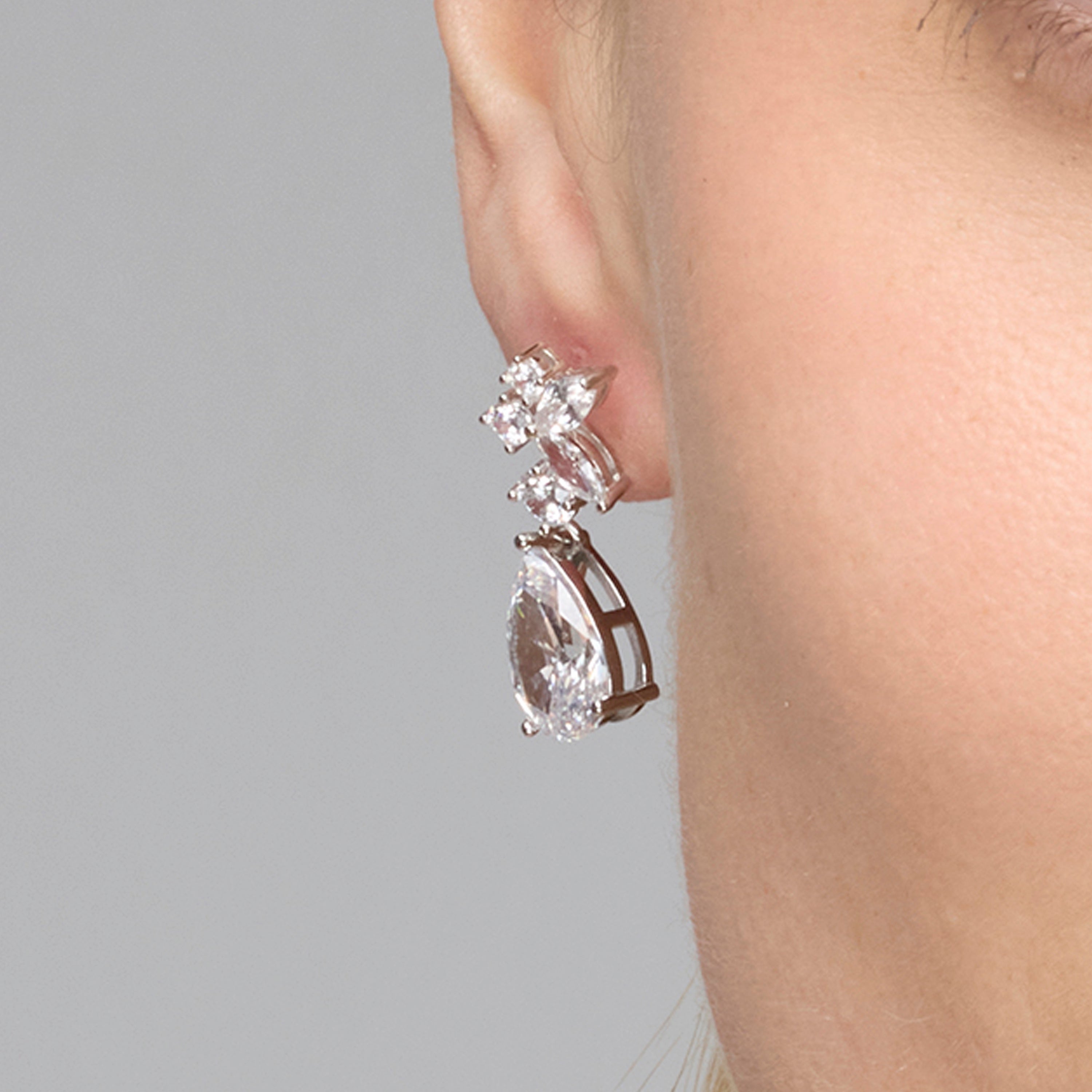 Pendientes Raxal de Plata de Ley 925 y Circonita Brillante acabado rodio