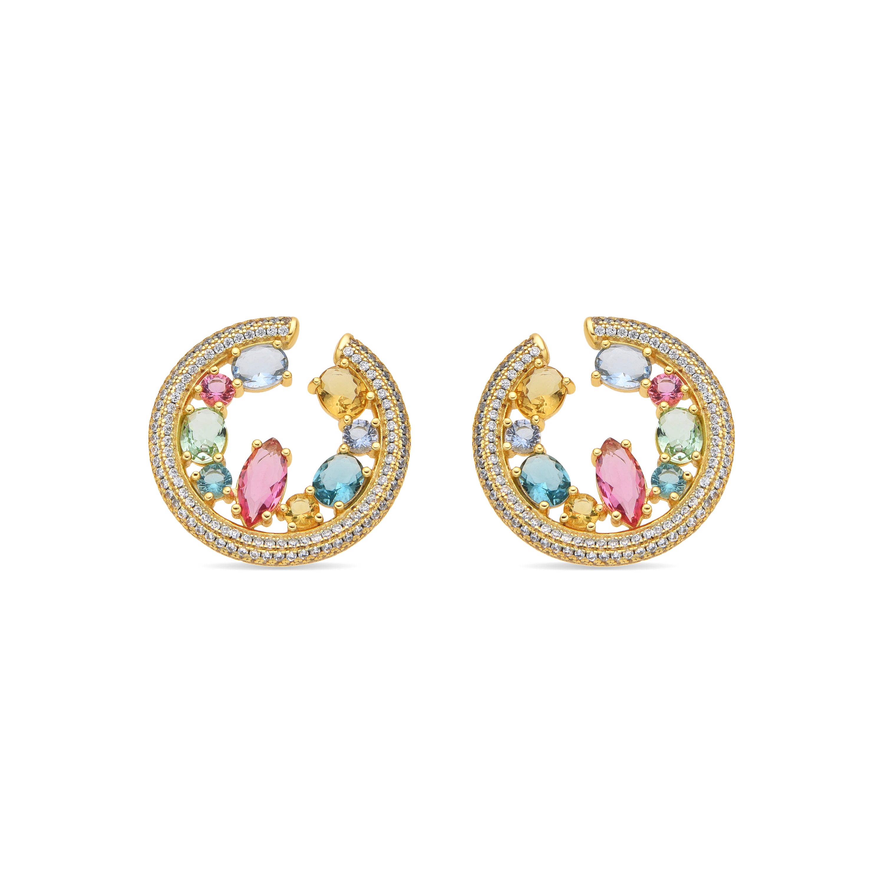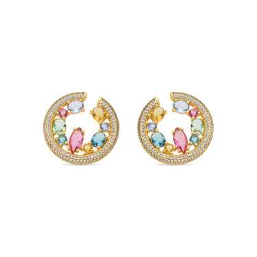 Pendientes de Plata de Ley 925 y Circonita Multicolor acabado oro amarillo de 18k - Sab