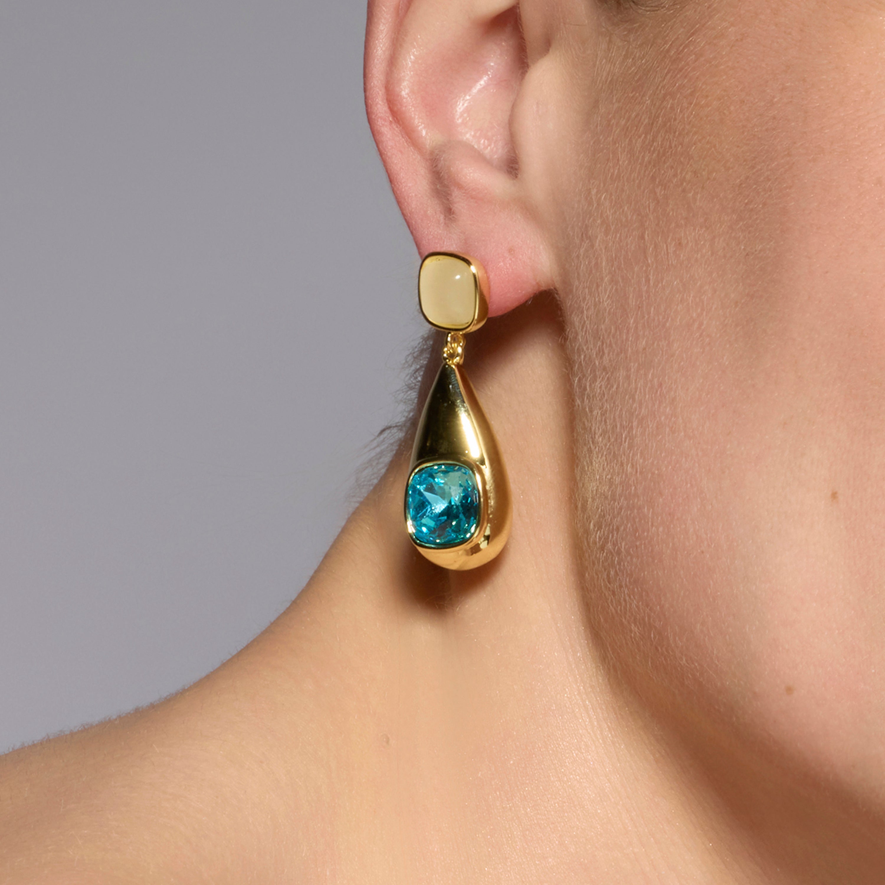 Pendientes Sethi de Cristal Azul acabado oro amarillo de 18k