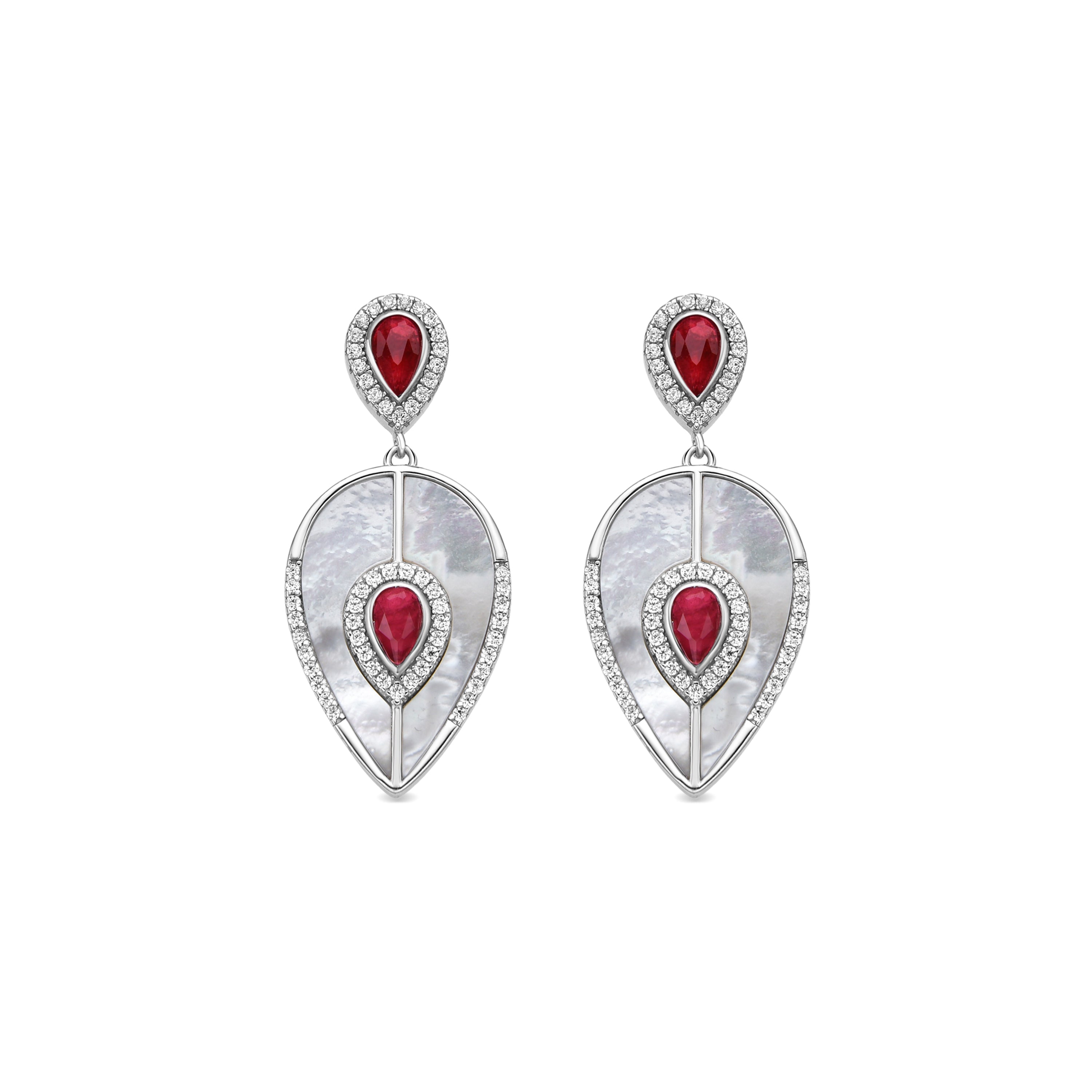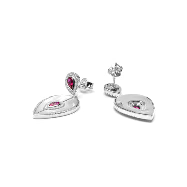 Pendientes de Plata de Ley 925 y Cuarzo Hidrotermal Cereza acabado rodio
