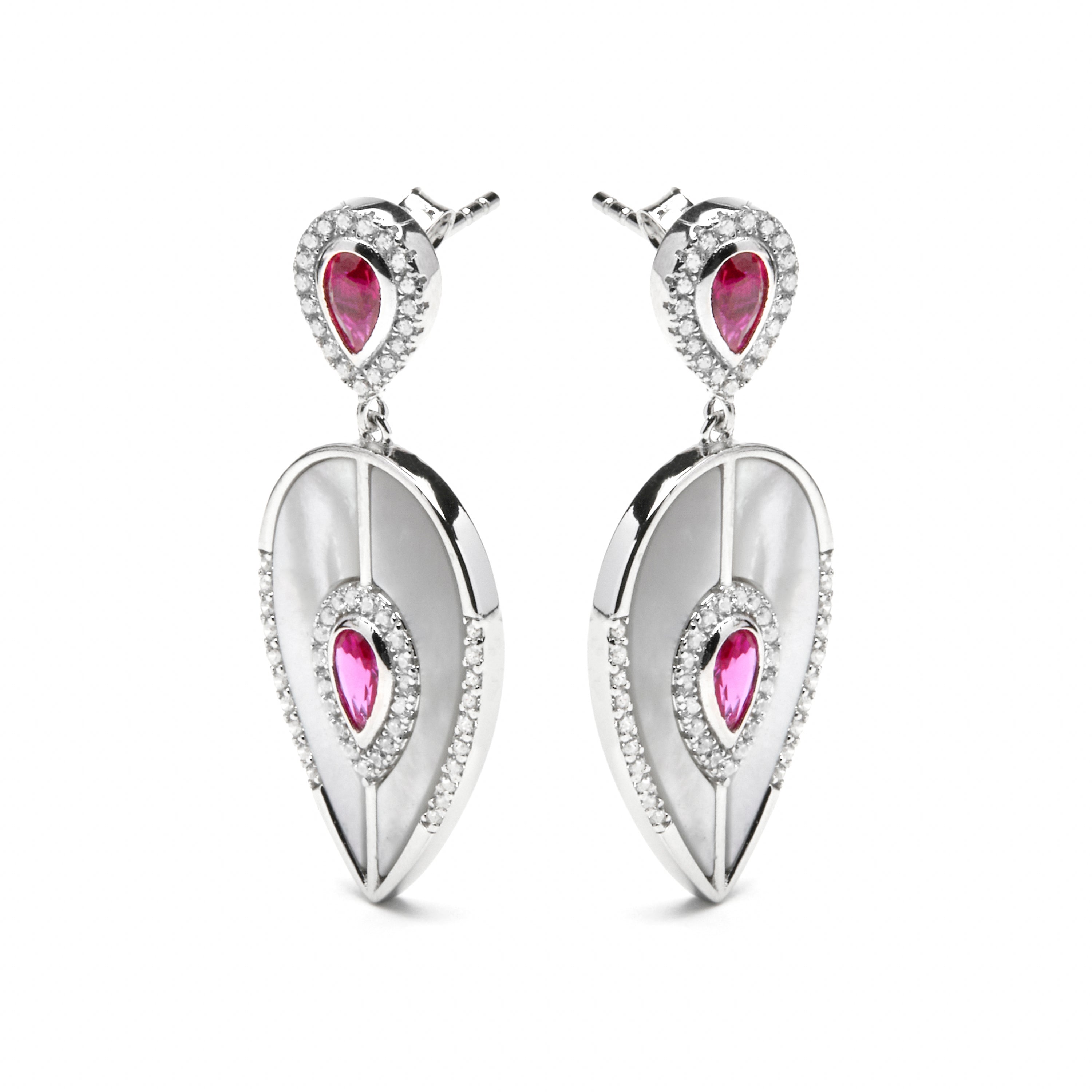 Pendientes de Plata de Ley 925 y Cuarzo Hidrotermal Cereza acabado rodio - Torwa