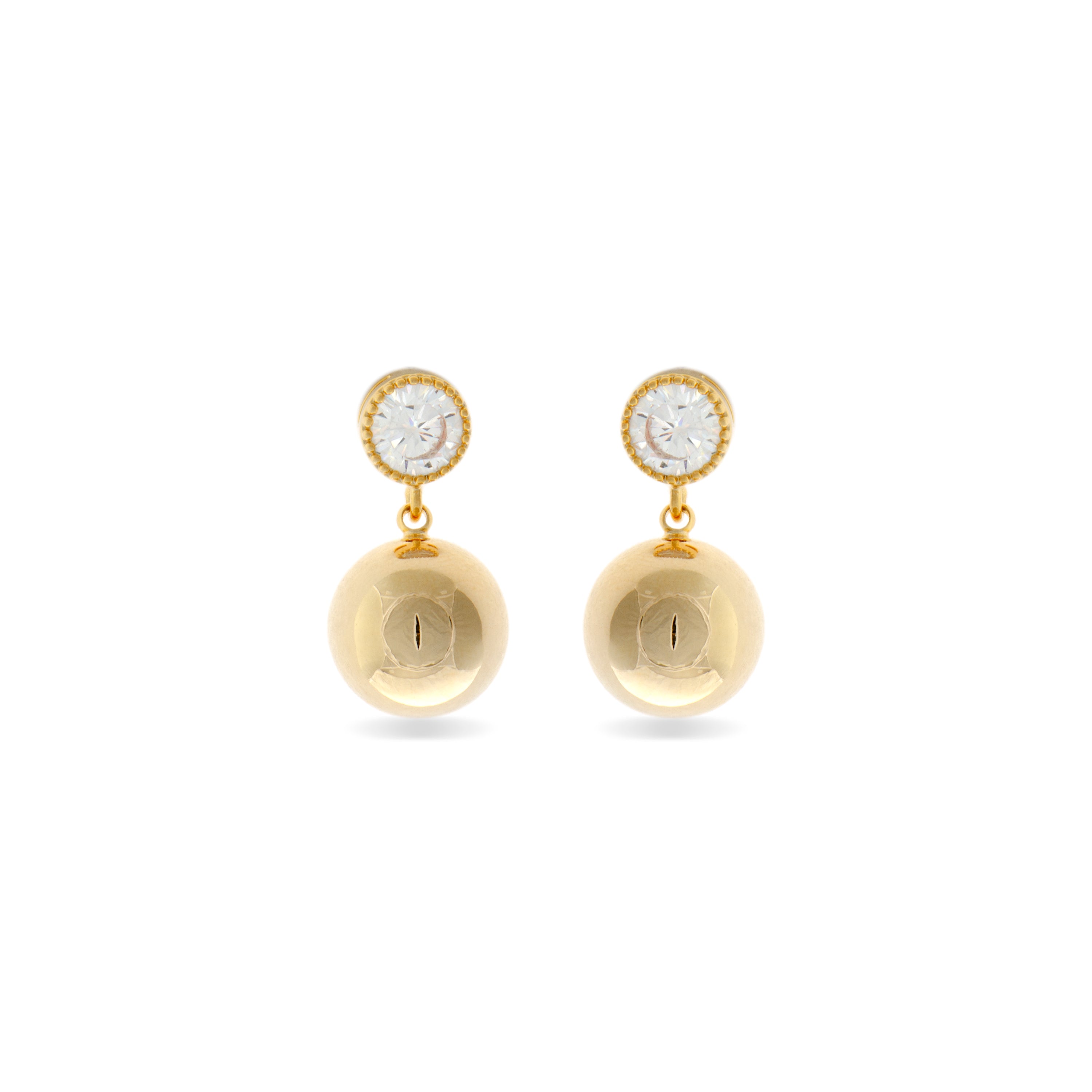 Pendientes Dilza acabados en oro amarillo de 18 quilates. África Basic encarna la sencillez refinada, piezas atemporales con líneas suaves y el brillo adicional de las circonitas. Joyas básicas sin pretensiones que son perfectas para el uso diario, pero también pueden funcionar en ocasiones especiales.