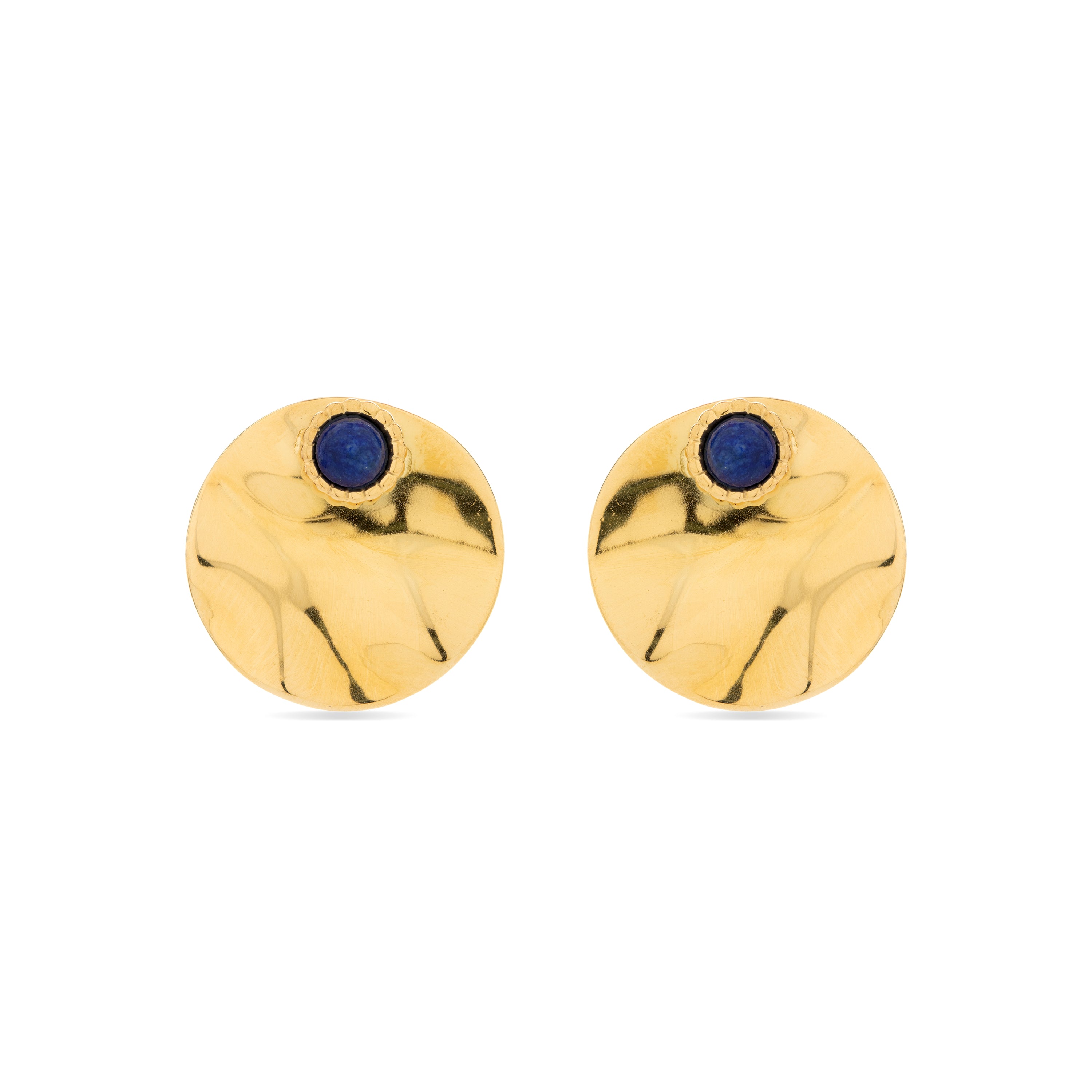 Pendientes de acero Yumi de Lapislazuli Natural acabados en oro amarillo de 18k. El estilo Boho es una estética de espíritu libre que mezcla diferentes culturas y expresiones artísticas en un estilo ecléctico con énfasis en los elementos orgánicos y la naturaleza.