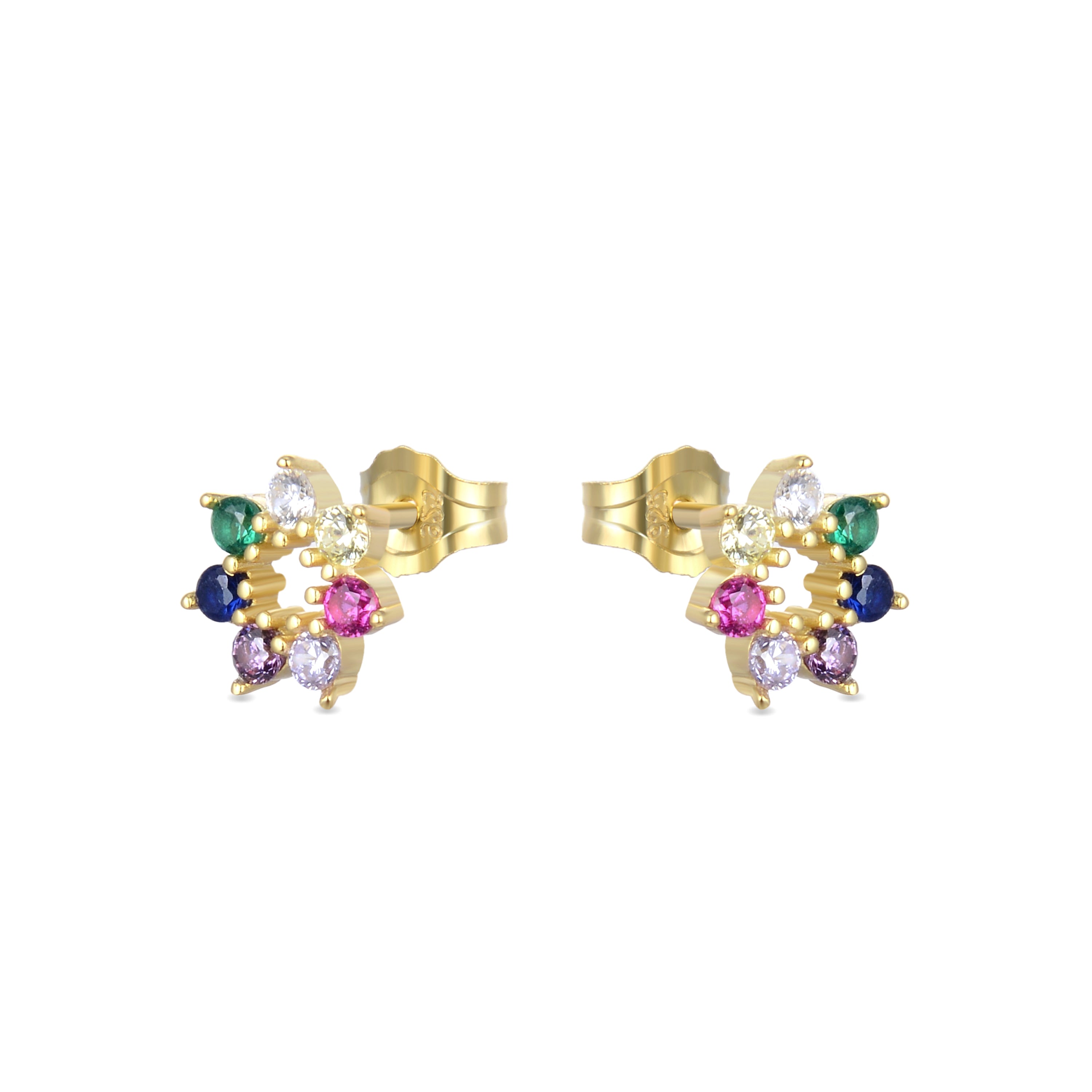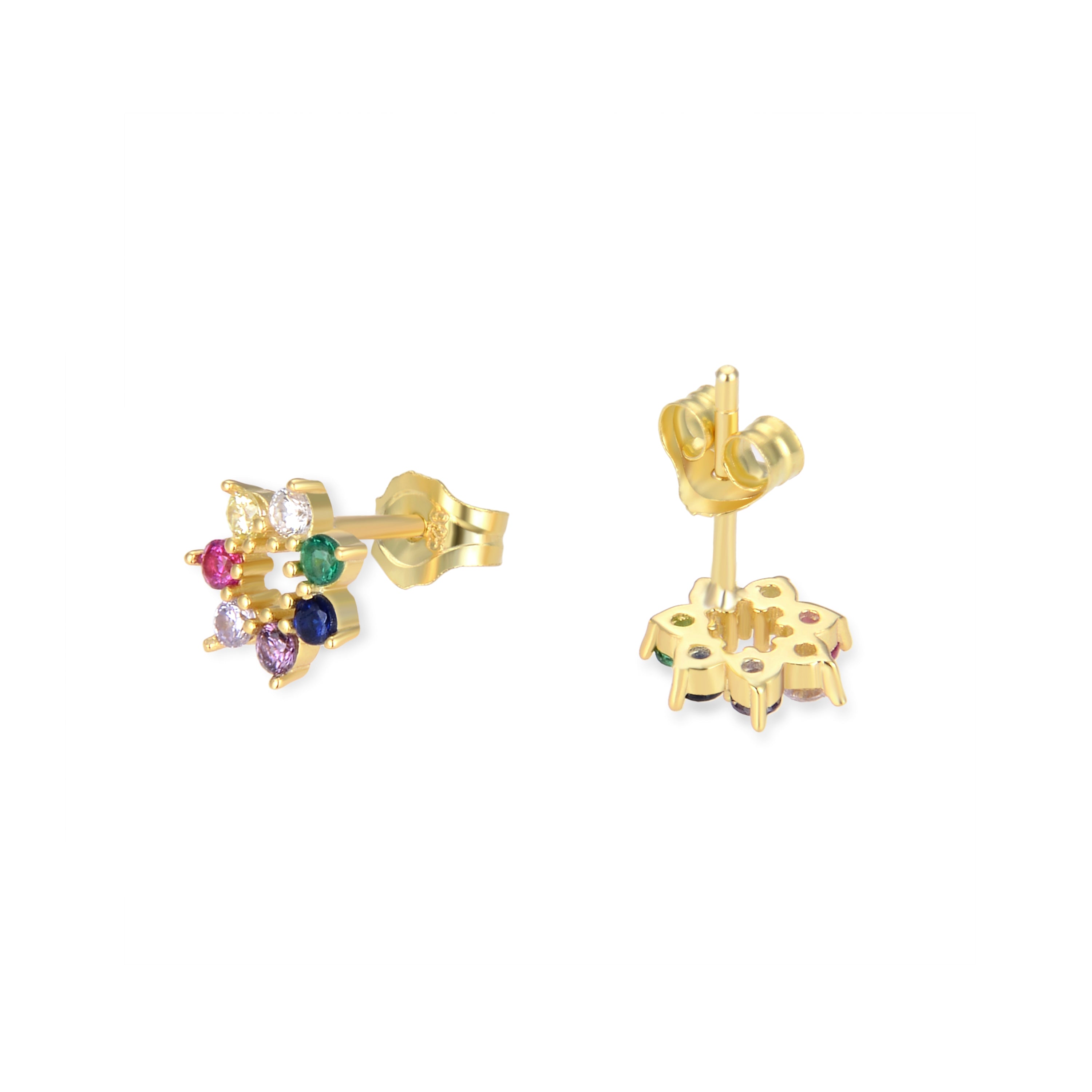 Pendientes de Plata de Ley 925 con Circonita Multicolor acabados en oro amarillo 18K - Sywa