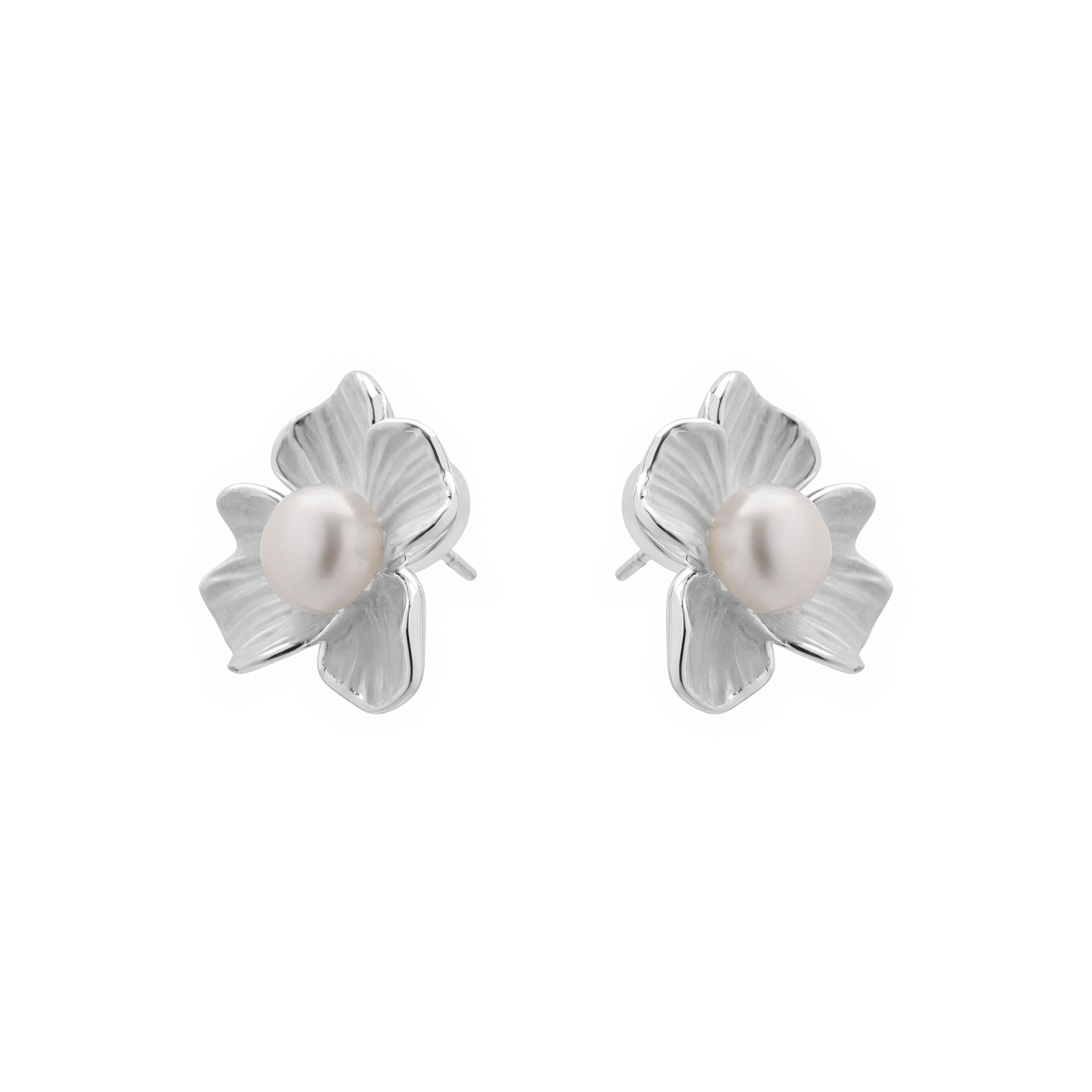 Pendientes de Perla Blanca Acabado En Plata - Efald