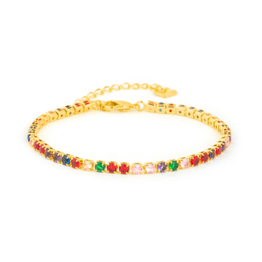 Pulsera Asio con circonita multicolor acabado oro amarillo 18k