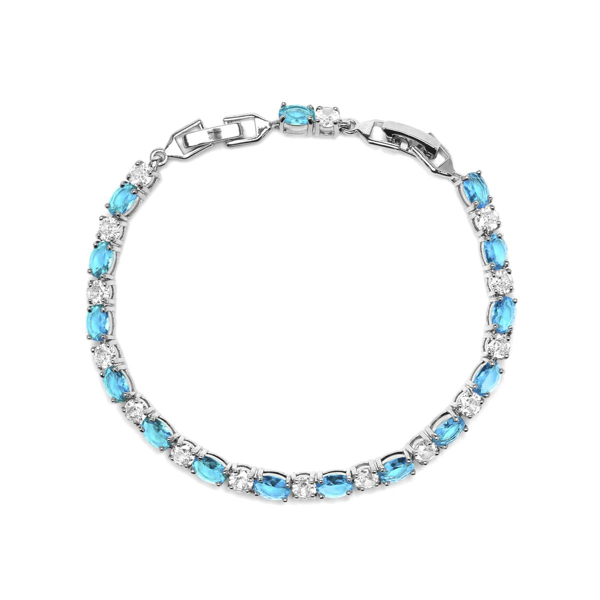 Pulsera acabado plata y Circonita Aguamarina - Libsi