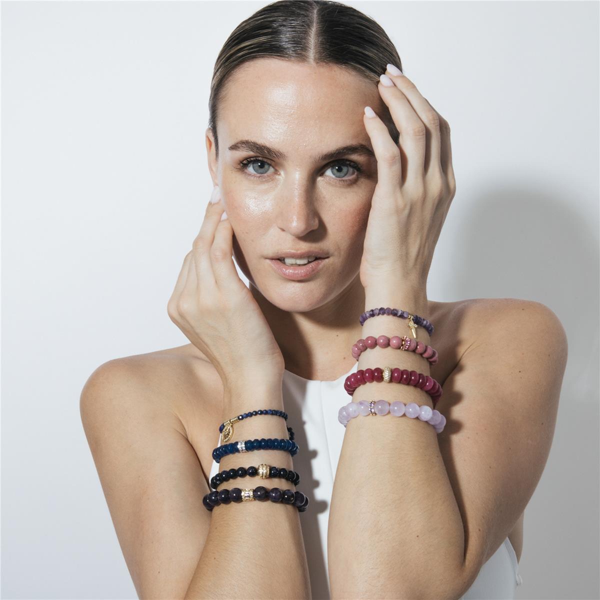 Pulsera Kamida de Plata de Ley 925 y Rodocrosita acabado en Oro Amarillo 18k