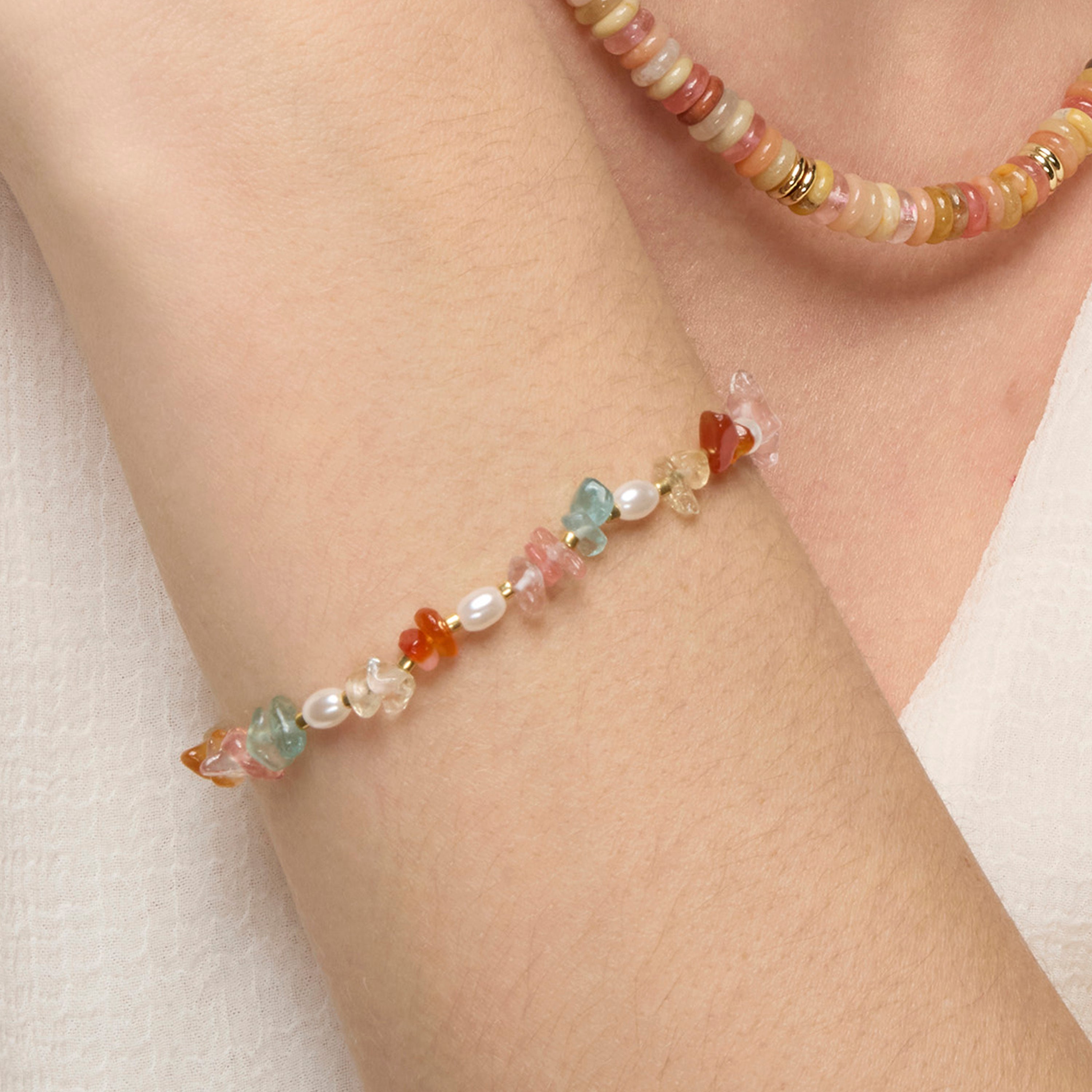Pulsera acabado oro amarillo de 18k y Multicolor Piedra Natural - Wenfa