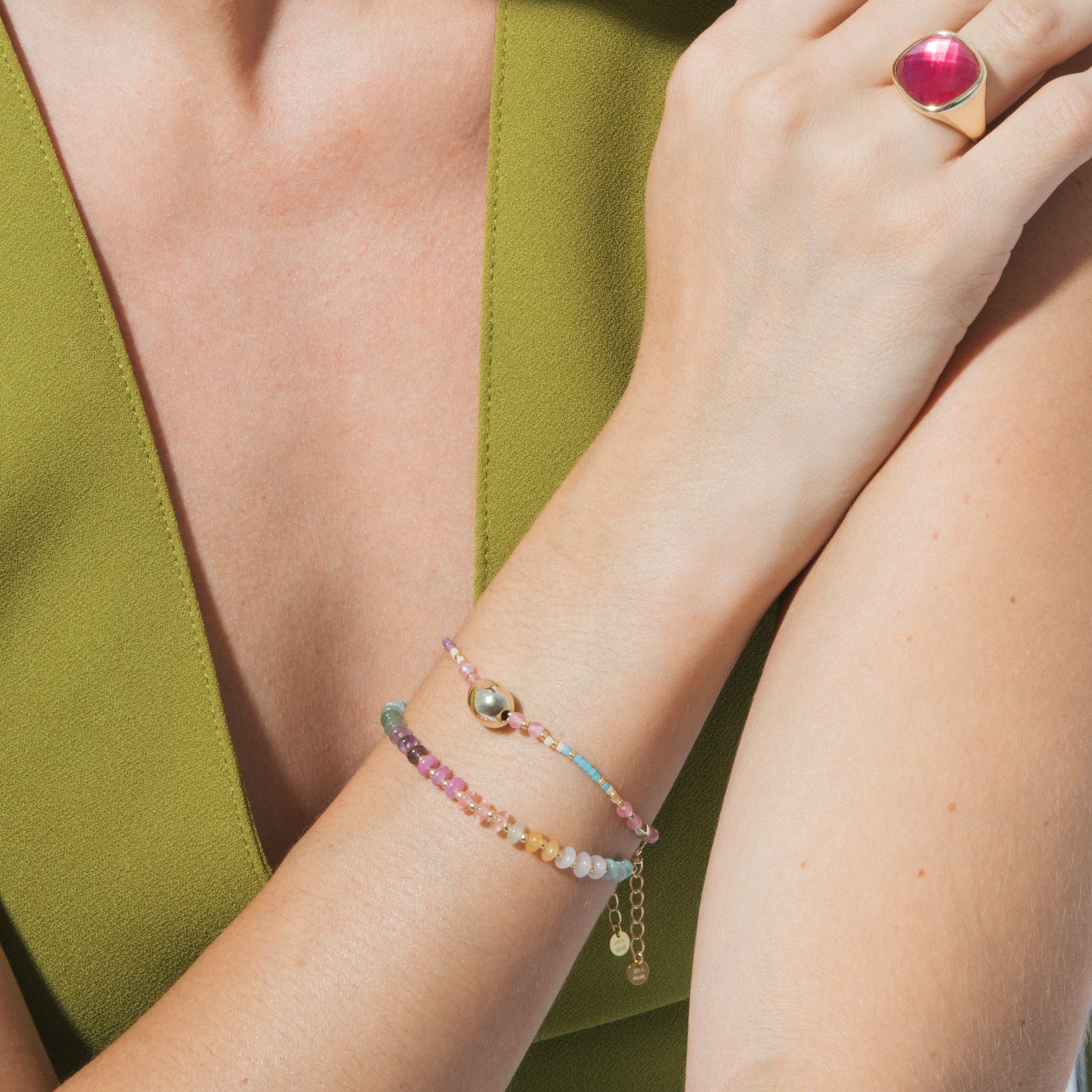 Pulsera Wasei de Cristal Multicolor acabado en oro amarillo de 18k
