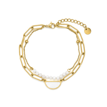 Weißes Perlenarmband mit 18k Gelbgold-Finish - Abbyo