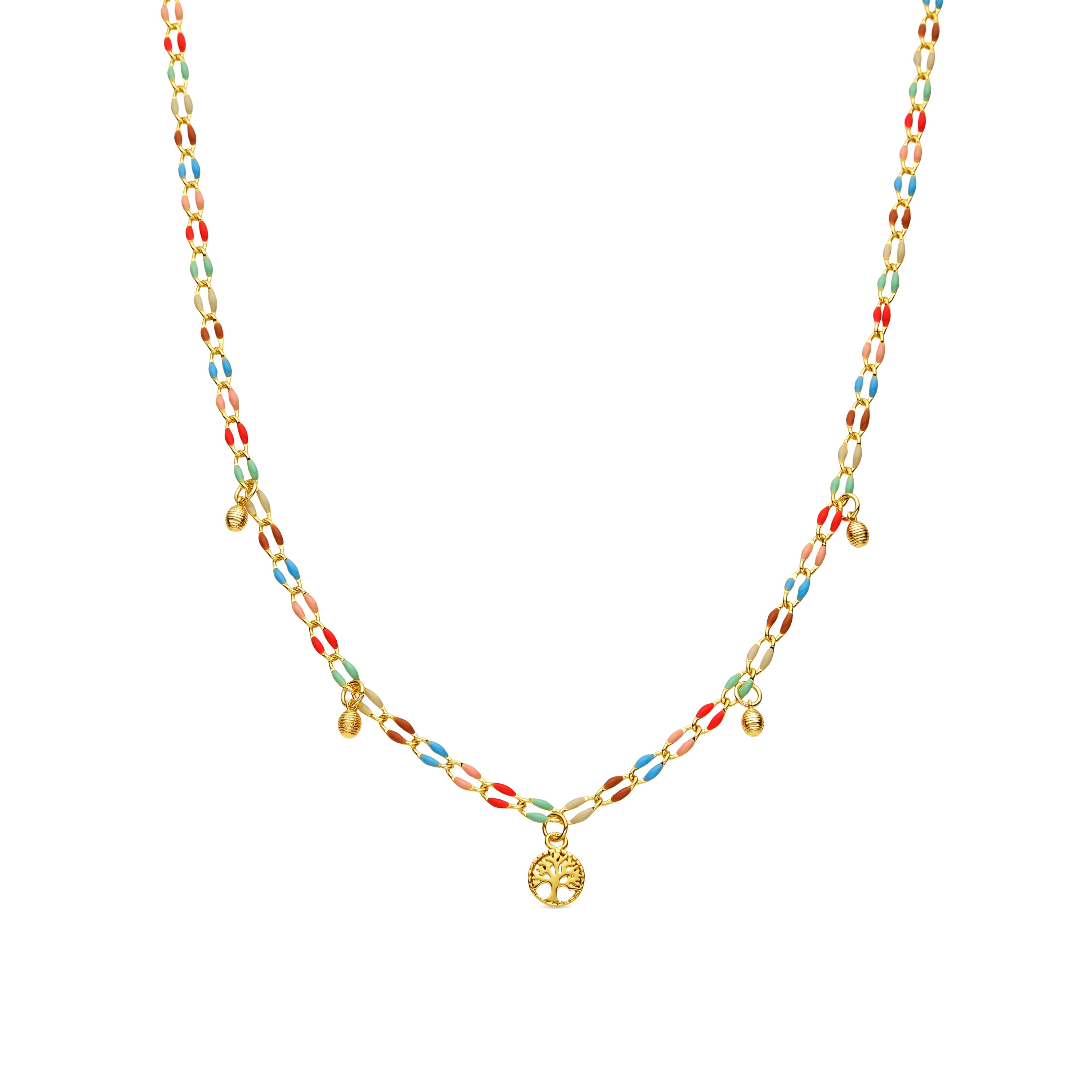 925er Silberhalskette mit mehrfarbigem Lack und 18k Gelbgold-Finish - Ximue