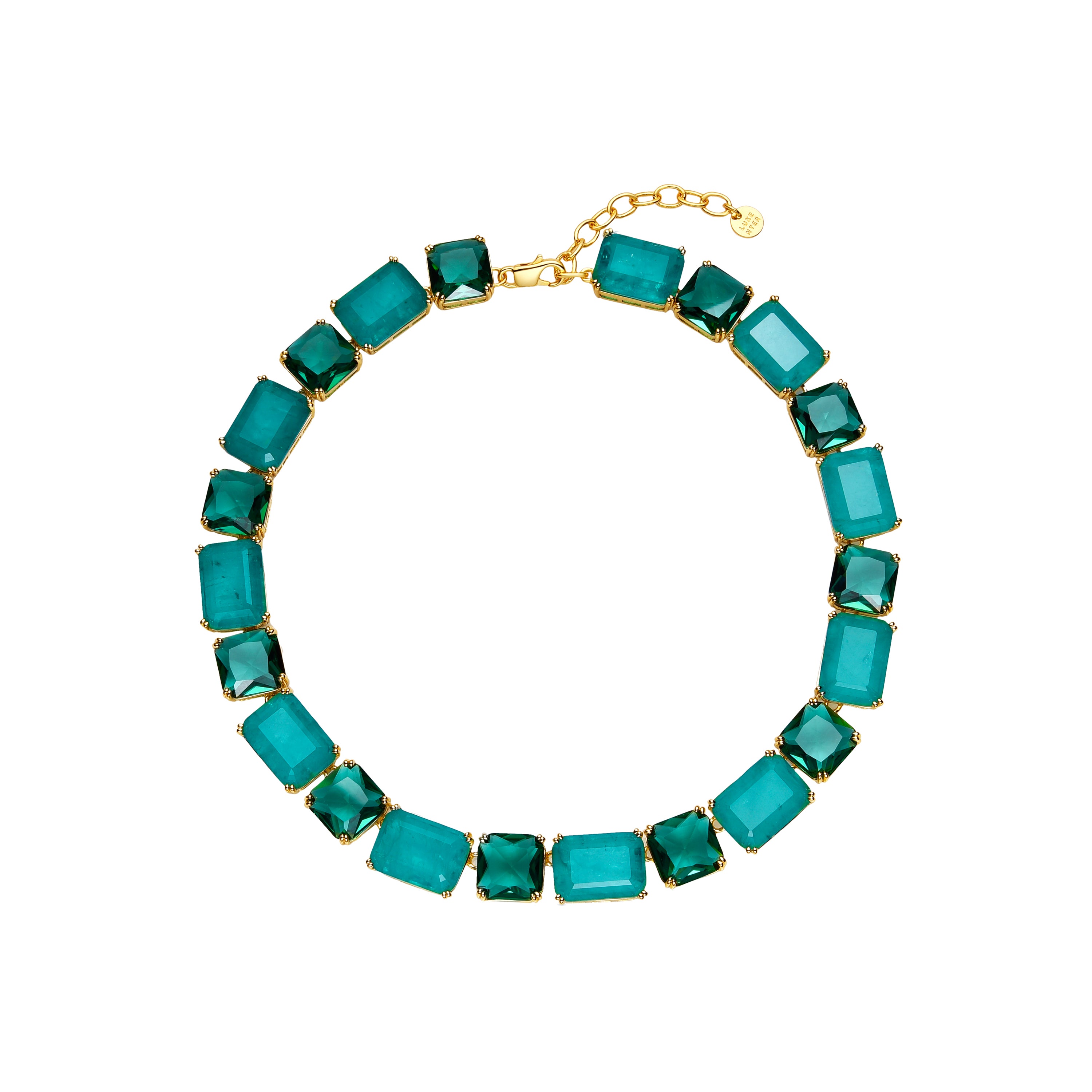 925er Sterlingsilber-Halskette mit Paraiba-Grüner Hydrothermal-Quarz, vergoldet mit 18k Gelbgold - Lindrak