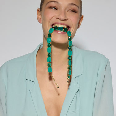 Halskette Lindrak aus 925er Sterlingsilber und grünem Paraiba-Hydrothermalquarz mit 18k Gelbgold-Finish