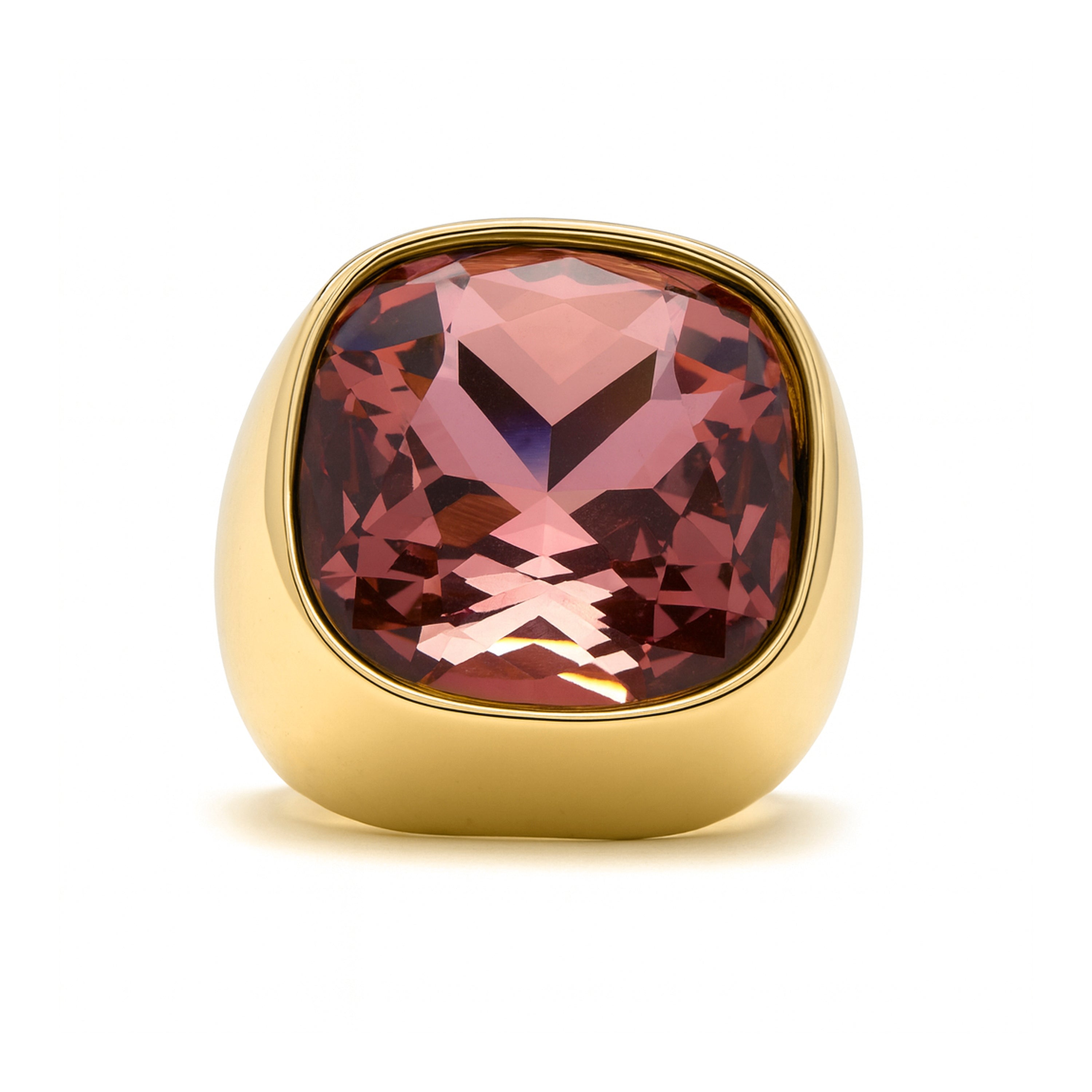 Brauner Zirkonia-Ring mit 18k Gelbgold-Finish - Ashan