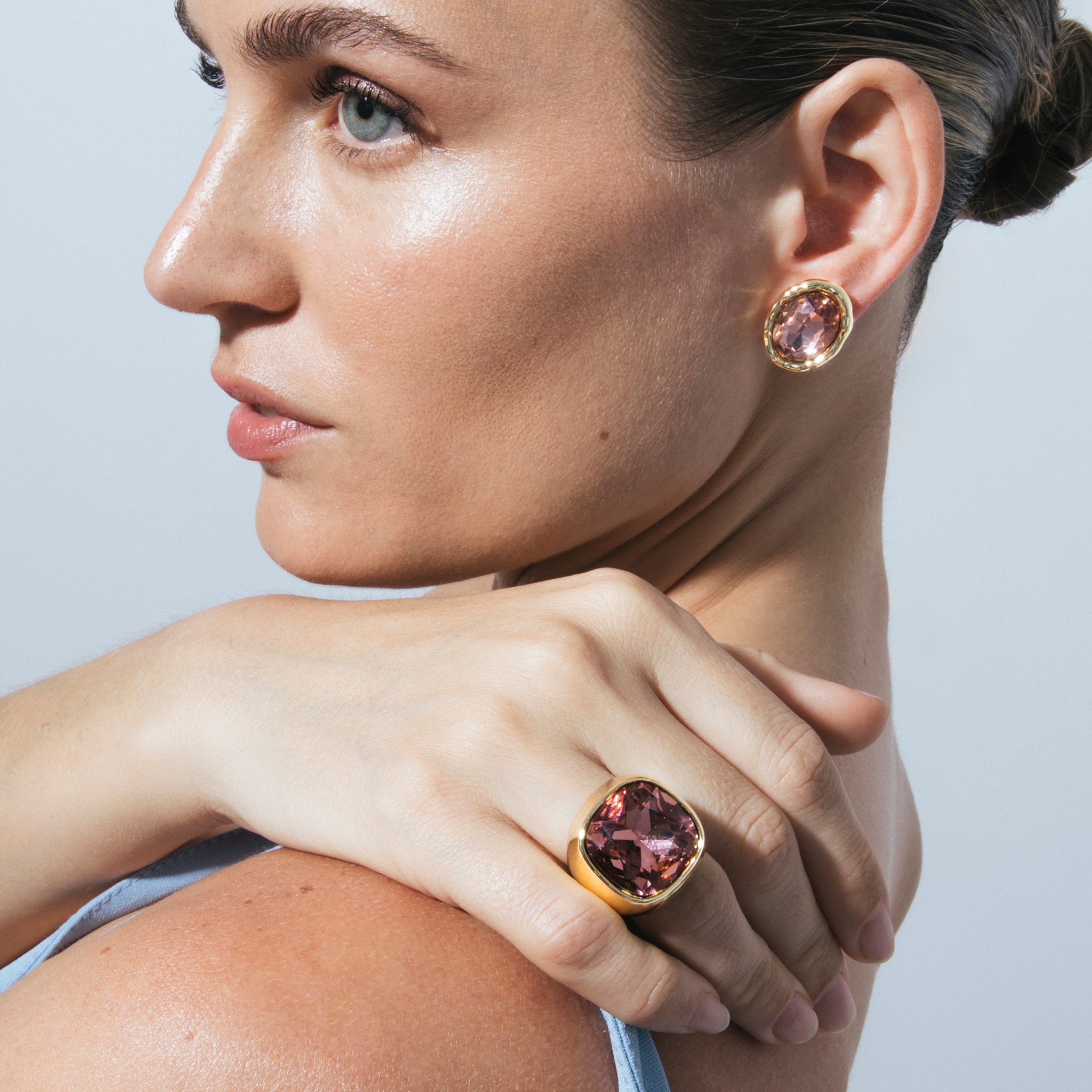 Aschan-Ring mit braunem Zirkonia, 18k Gelbgold-Finish