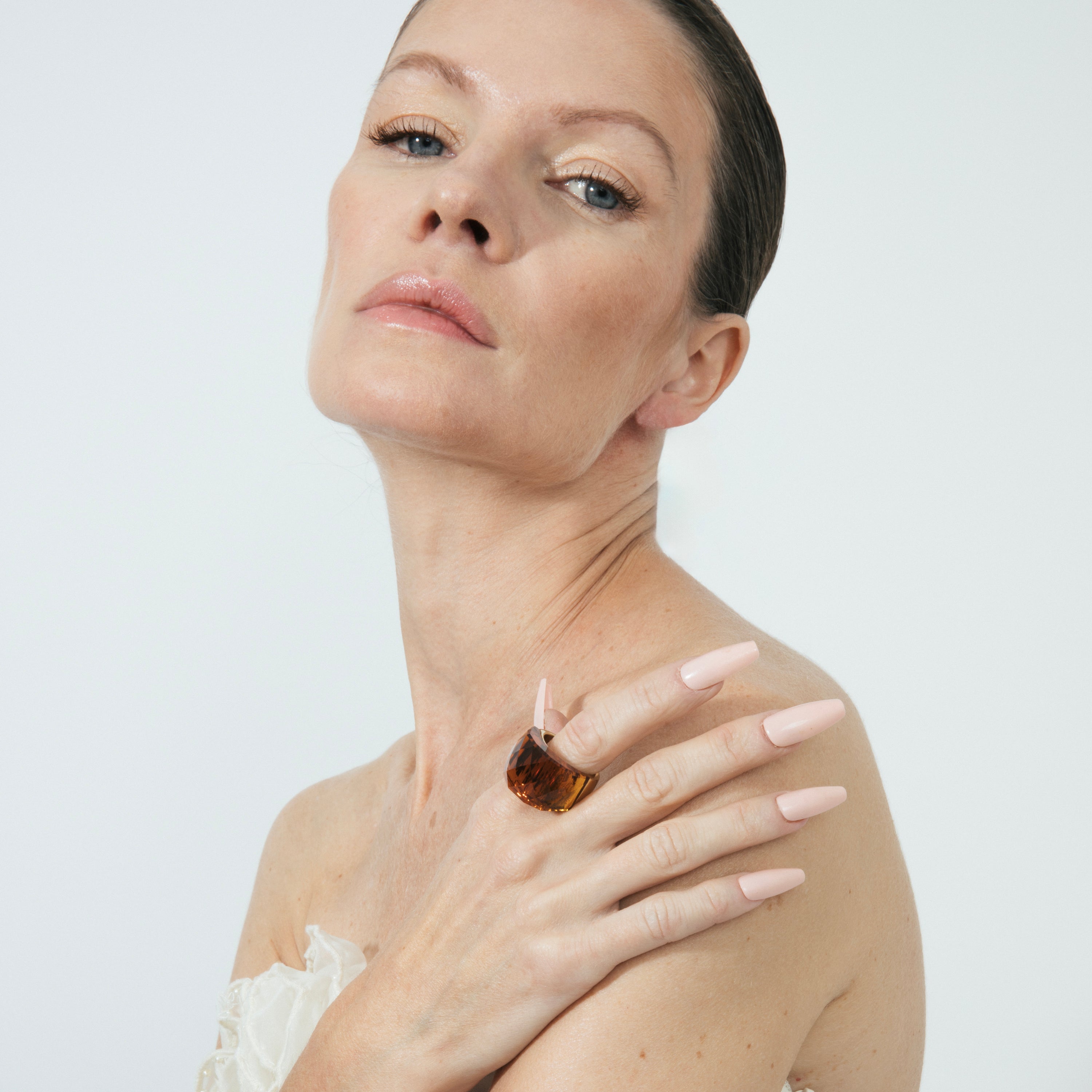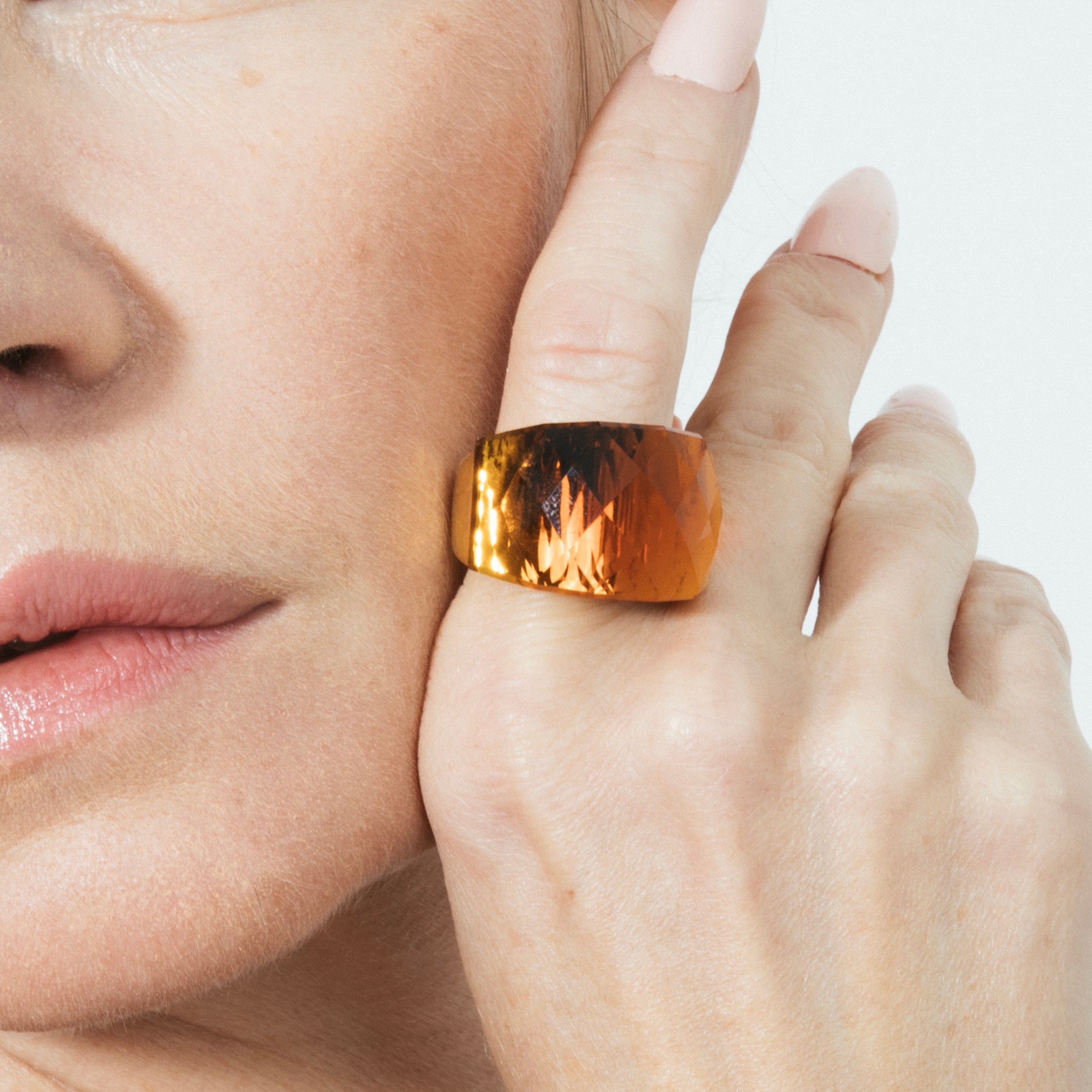 Fadino-Ring aus orangefarbenem hydrothermalem Quarz mit 18k Gelbgold-Finish