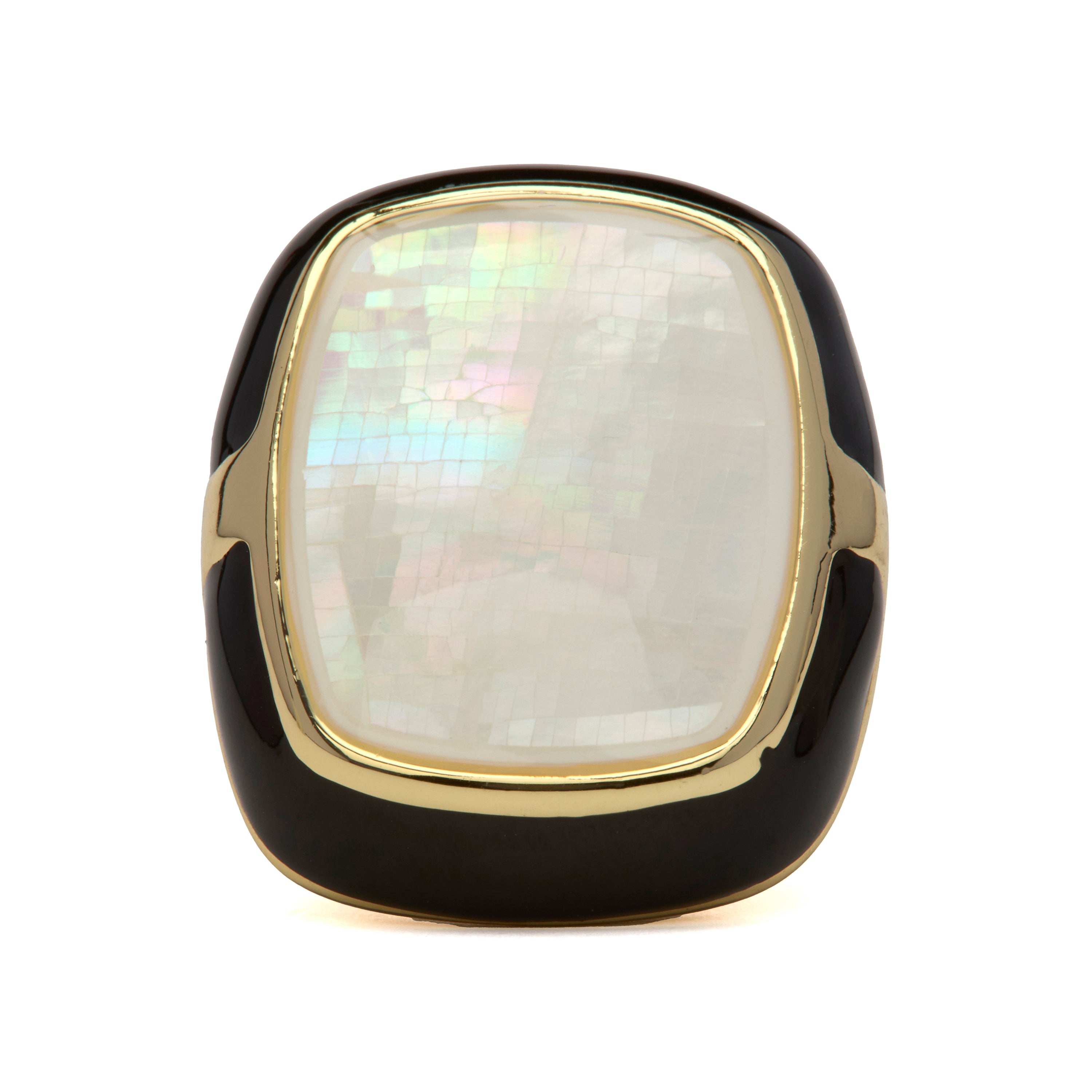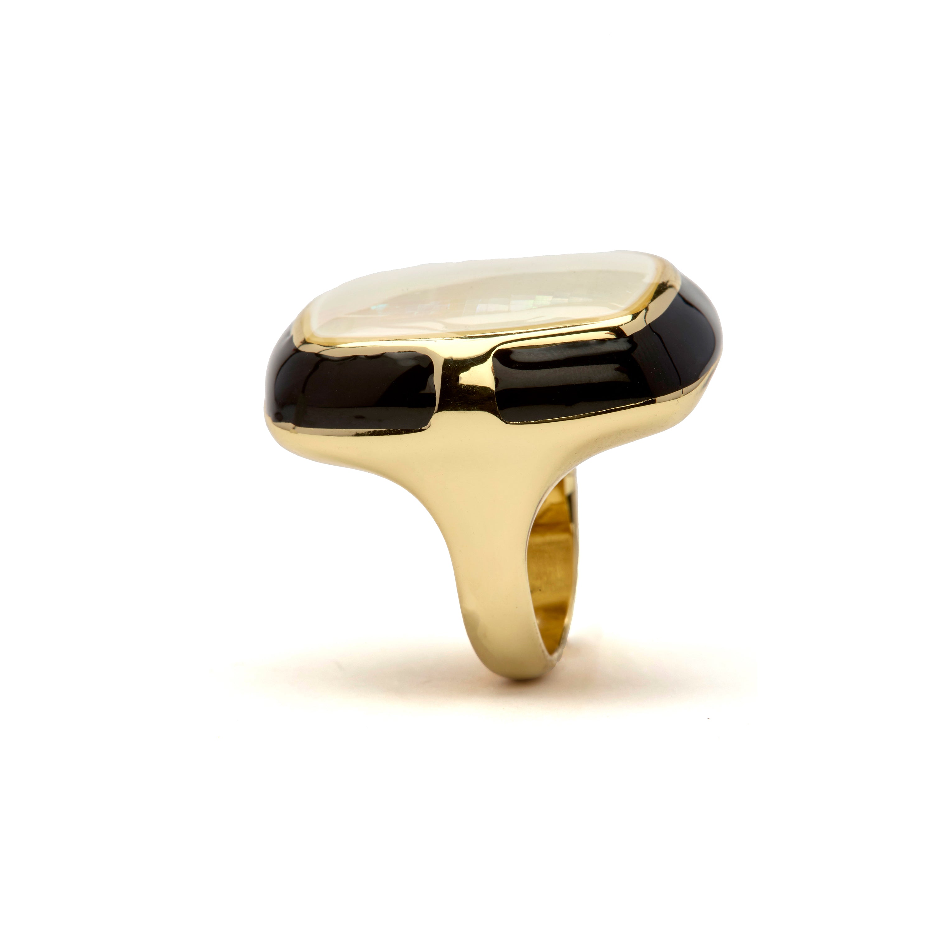 Rounki-Ring aus weißem Perlmutt mit 18 Karat Gelbgold-Finish