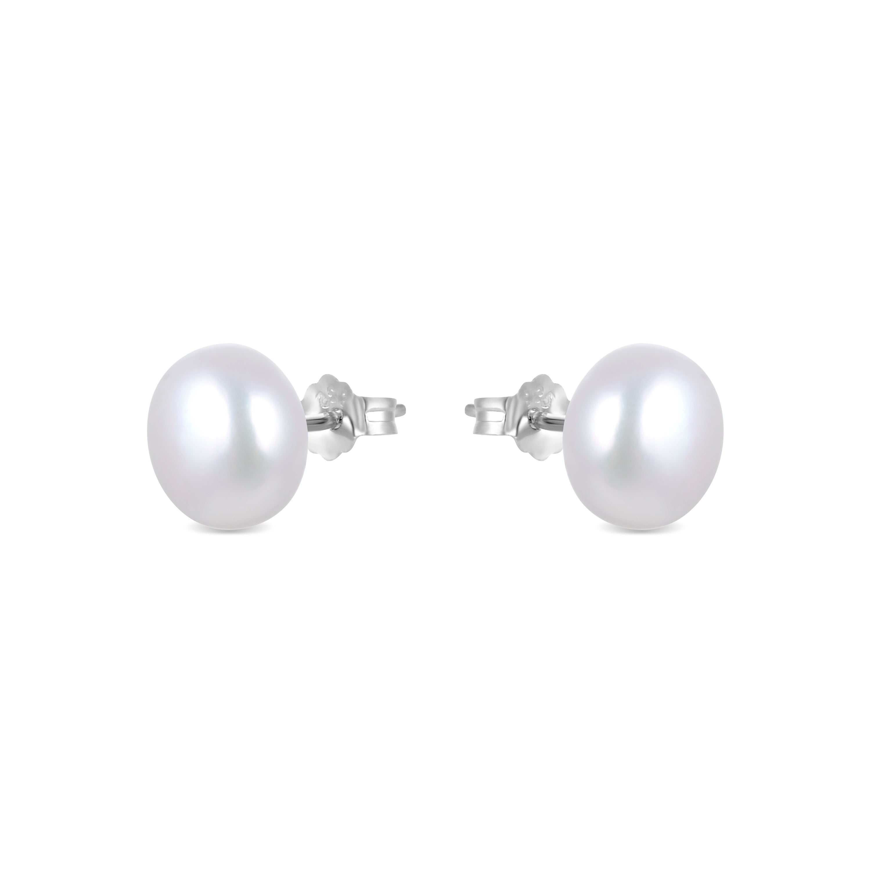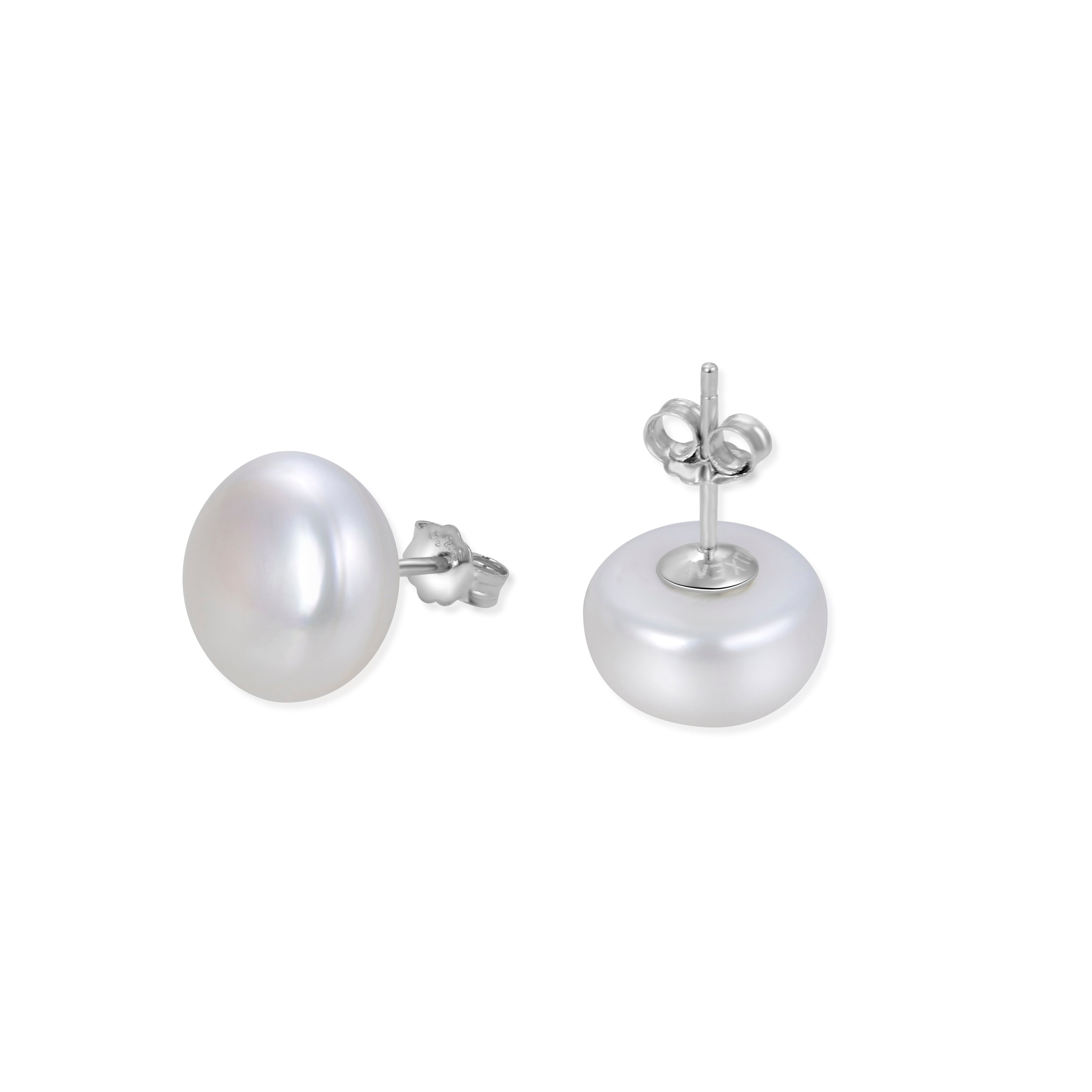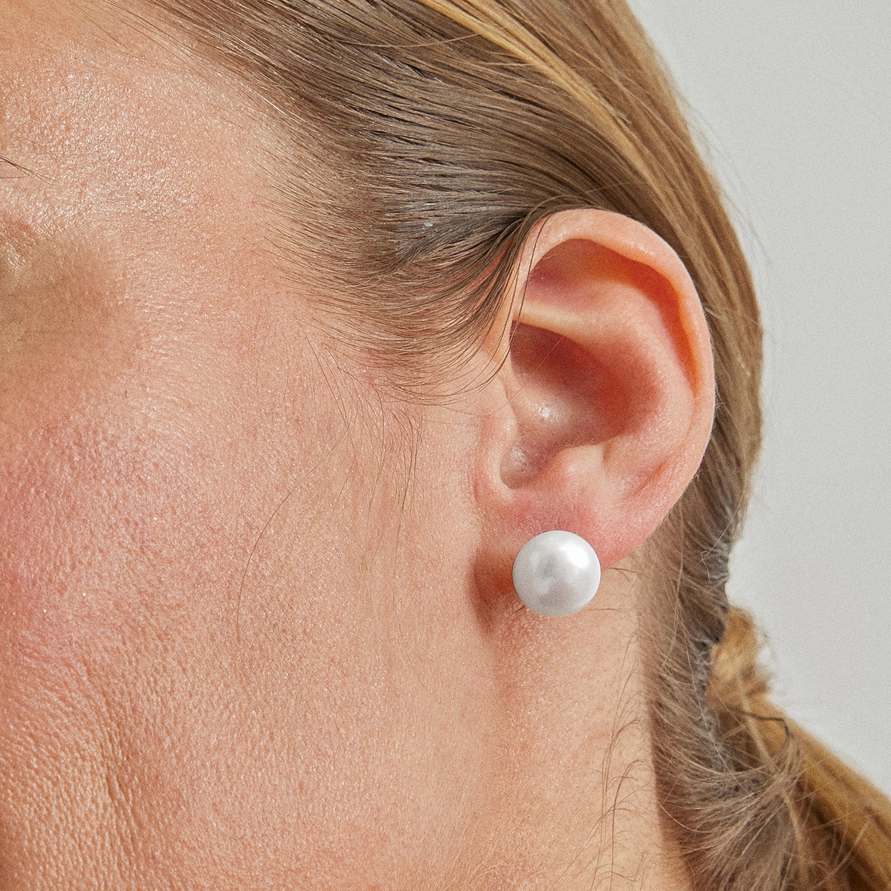12mm 925 Sterlingsilber Ohrringe mit weißer Perle, rhodiniert - Basic