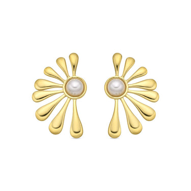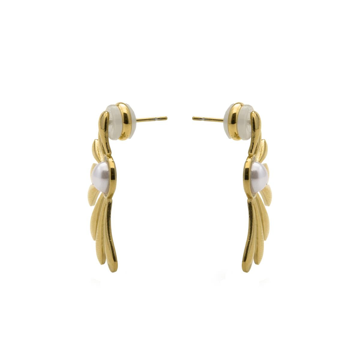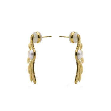 Weiße Perlenohrringe mit 18k Gelbgold-Finish - Grimbe
