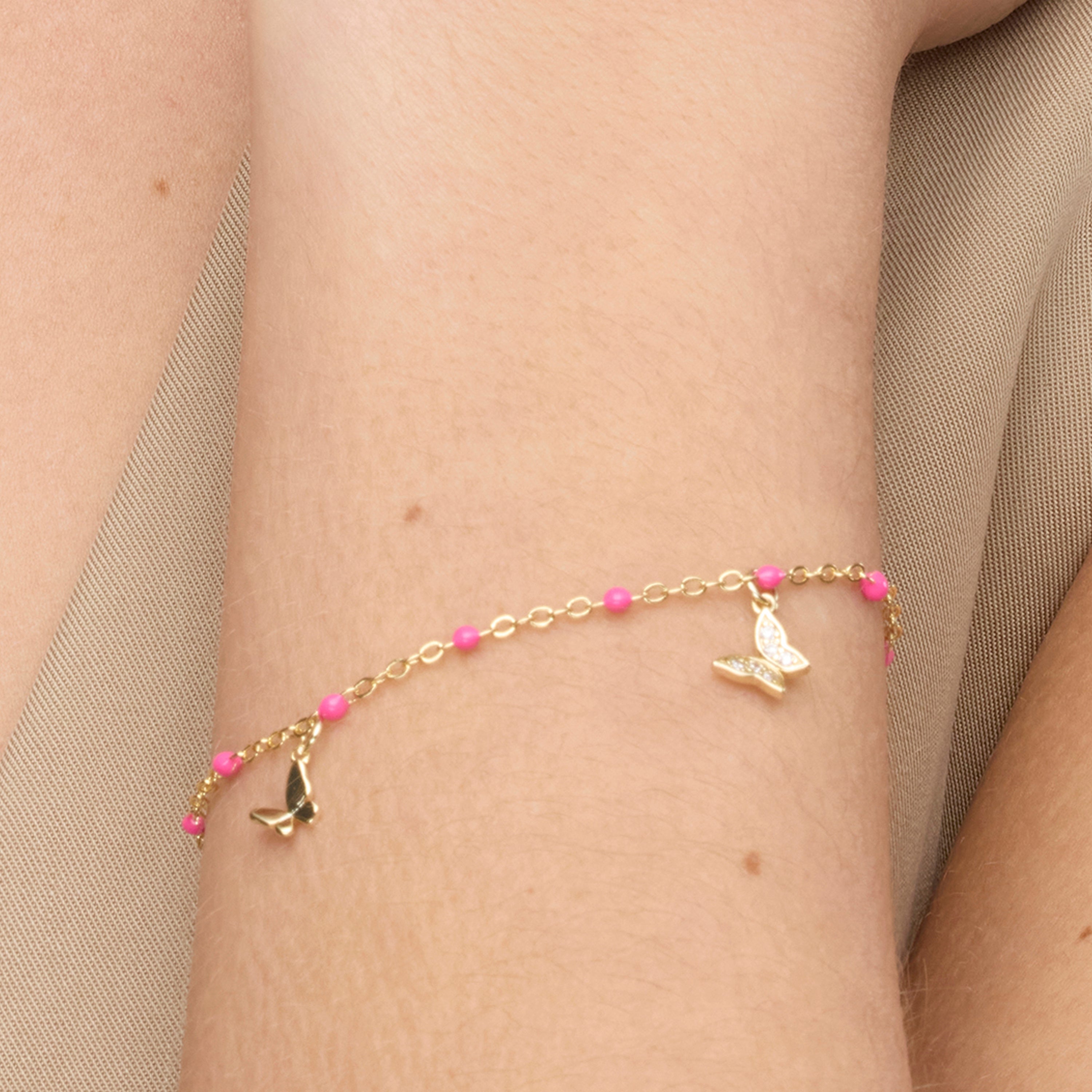 Armband Zumre aus 925er Sterlingsilber und rosa lackiert mit 18k Gelbgold-Finish