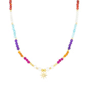 925er Sterlingsilber-Halskette mit mehrfarbigem Kristall, vergoldet mit 18K Gelbgold - Shasha