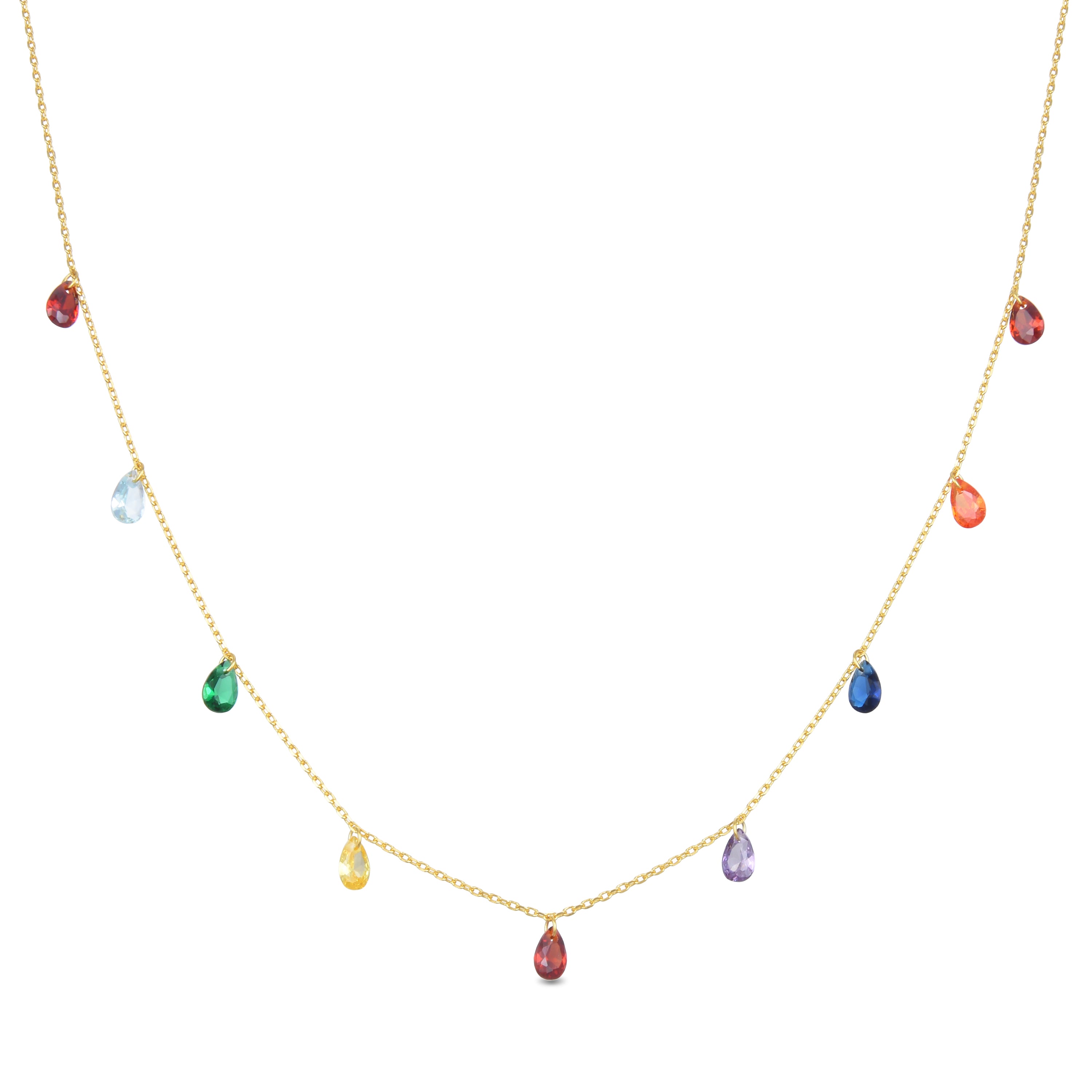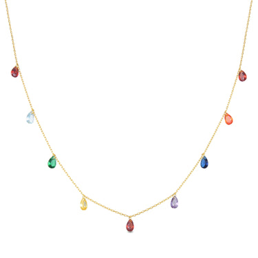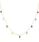 925er Sterling Silber Halskette mit mehrfarbigen Zirkonia, vergoldet mit 18K Gelbgold - Lukza