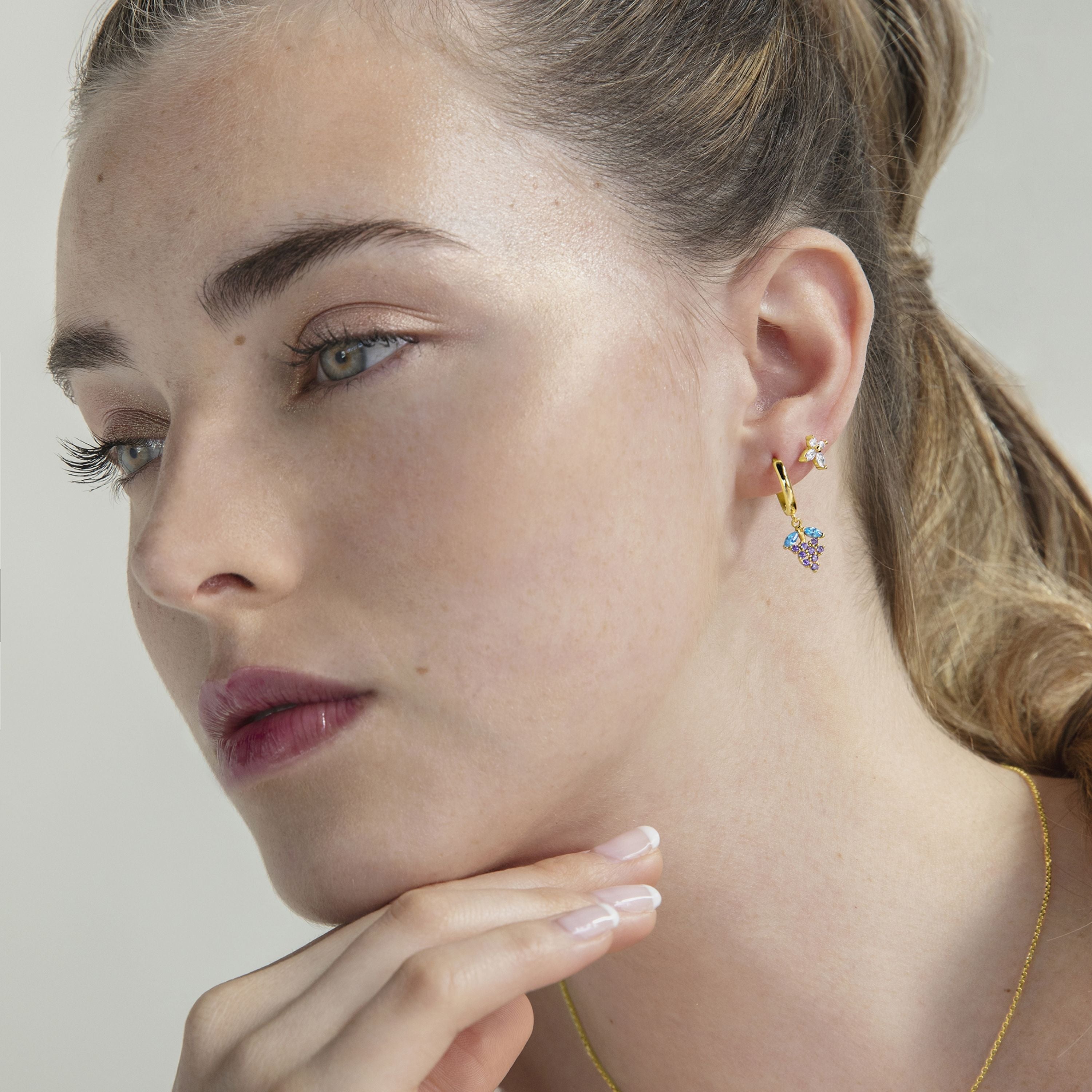 Piercing Sysya aus 925er Sterlingsilber, mit 18-karätigem Gelbgold und mehrfarbigen Zirkonien. Schmuck mit übertriebenen Designs, bei denen Piercings, Kletterer, Ear Cuffs und Ear Jackets die Hauptrolle spielen. Zarte Designs geben den Ohrringen ihren Namen. Sorgfältig gefertigte und von Hand polierte Ohrringe, die perfekte Formen mit unendlichen Kombinationen von farbigen Zirkonien, die mit Rhodium, 18-karätigem Gelbgold und Roségold überzogen sind, auf 925er Sterlingsilber schaffen. Wie in den 60er Jahren wird alles neu gemischt für einen neuen Effekt für die Beat-Generation, wobei die beste Mischung aus New Yorker Nüchternheit und weiblicher Sinnlichkeit entsteht. Designs mit Persönlichkeit diktieren die Farbe und die Mutter Natur: Die Verbindung verschiedener Materialien und eine exquisite Anordnung der Teile machen diese Linie zu einem einzigartigen Schmuckstück, das die britische Seite des It-Girls definiert: Die Relativität ist (IN) herent zur Farbe.