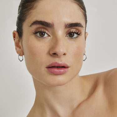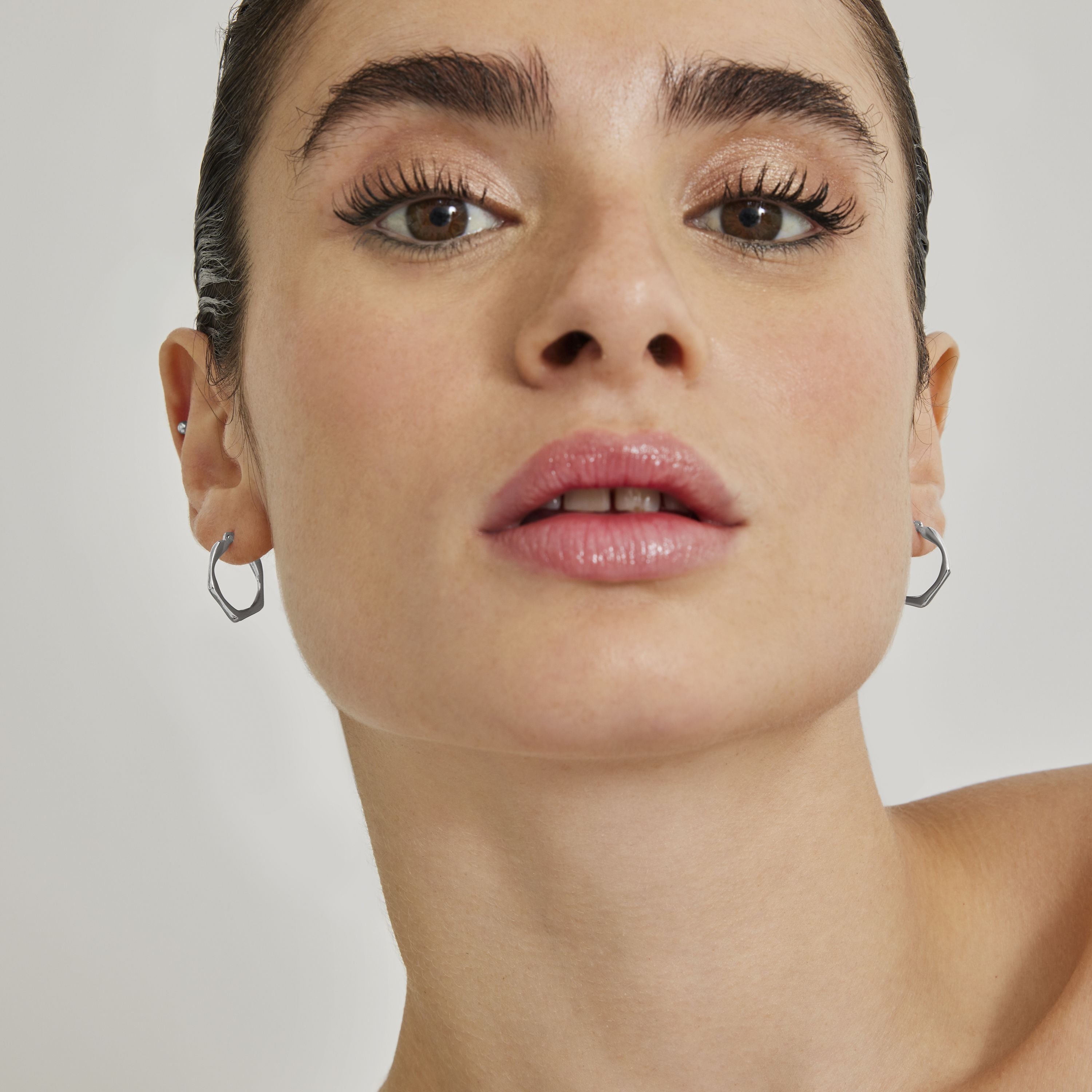 Ohrringe Meria mit Rhodium-Beschichtung. Afrika Basic verkörpert raffinierte Schlichtheit, zeitlose Stücke mit sanften Linien und dem zusätzlichen Glanz von Zirkonia. Unaufdringliche Basisschmuckstücke, die perfekt für den täglichen Gebrauch sind, aber auch bei besonderen Anlässen funktionieren können.