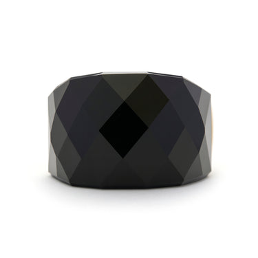 Ring mit hydrothermalem Quarz, Onyx, vergoldet mit 18K Gelbgold - Hianvi