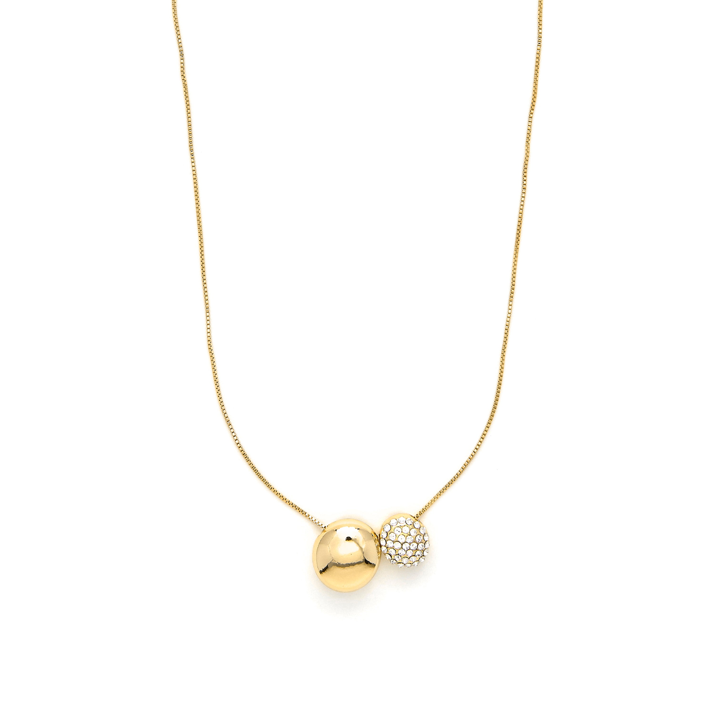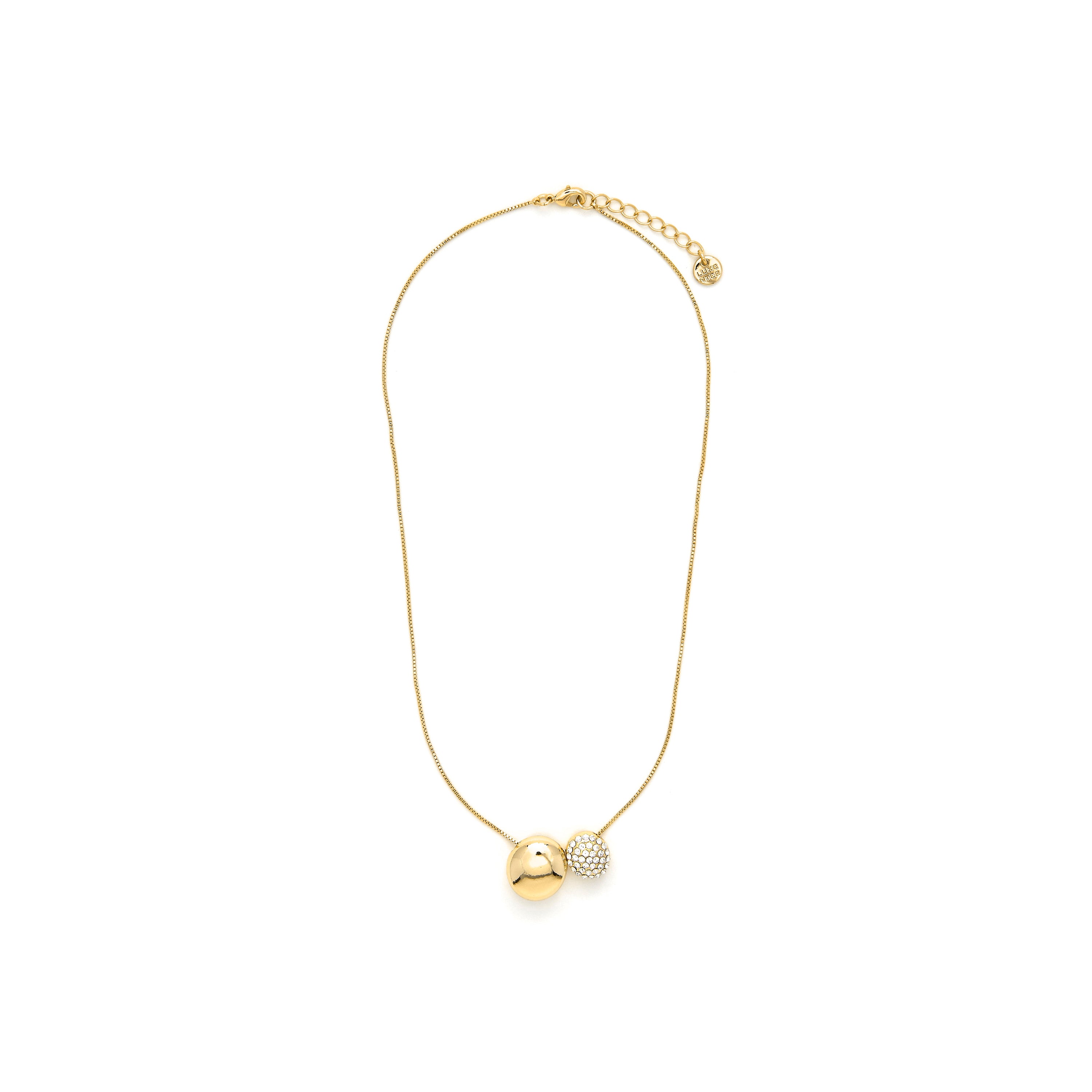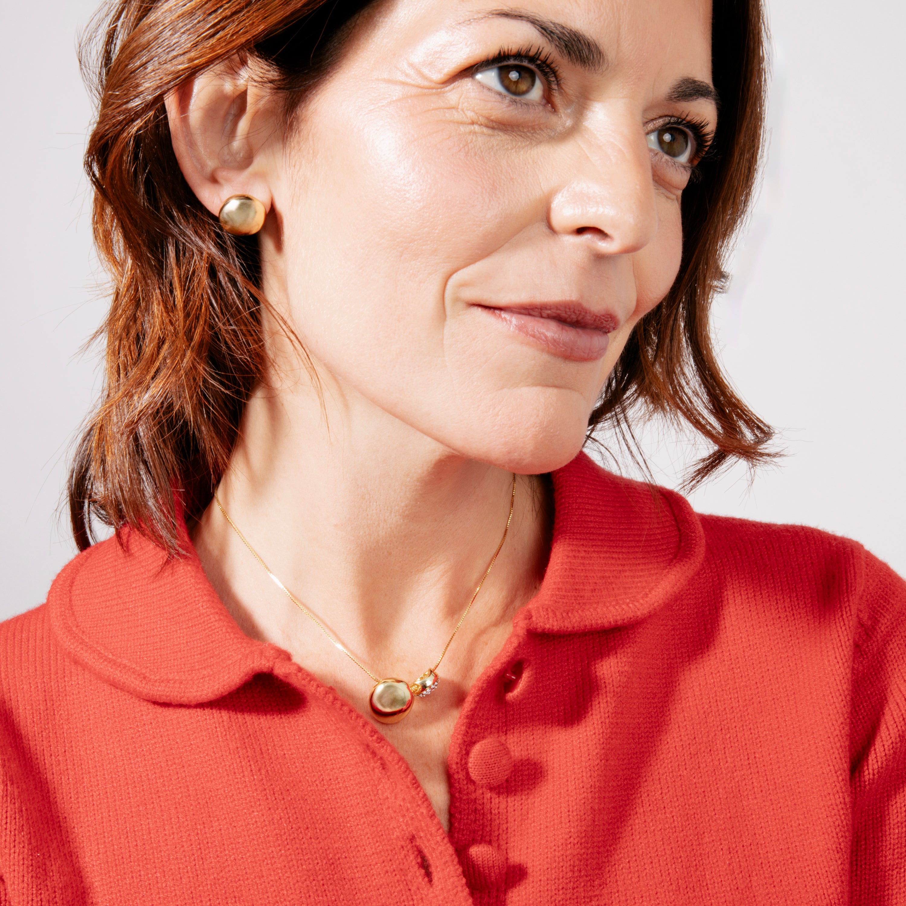Set aus Ohrringen und Halskette Mupio mit 18k Gelbgold-Finish und funkelnden Zirkoniasteinen. Schlichte, unprätentiöse Schmuckstücke, die perfekt für den täglichen Gebrauch sind, aber auch bei besonderen Anlässen funktionieren können.
