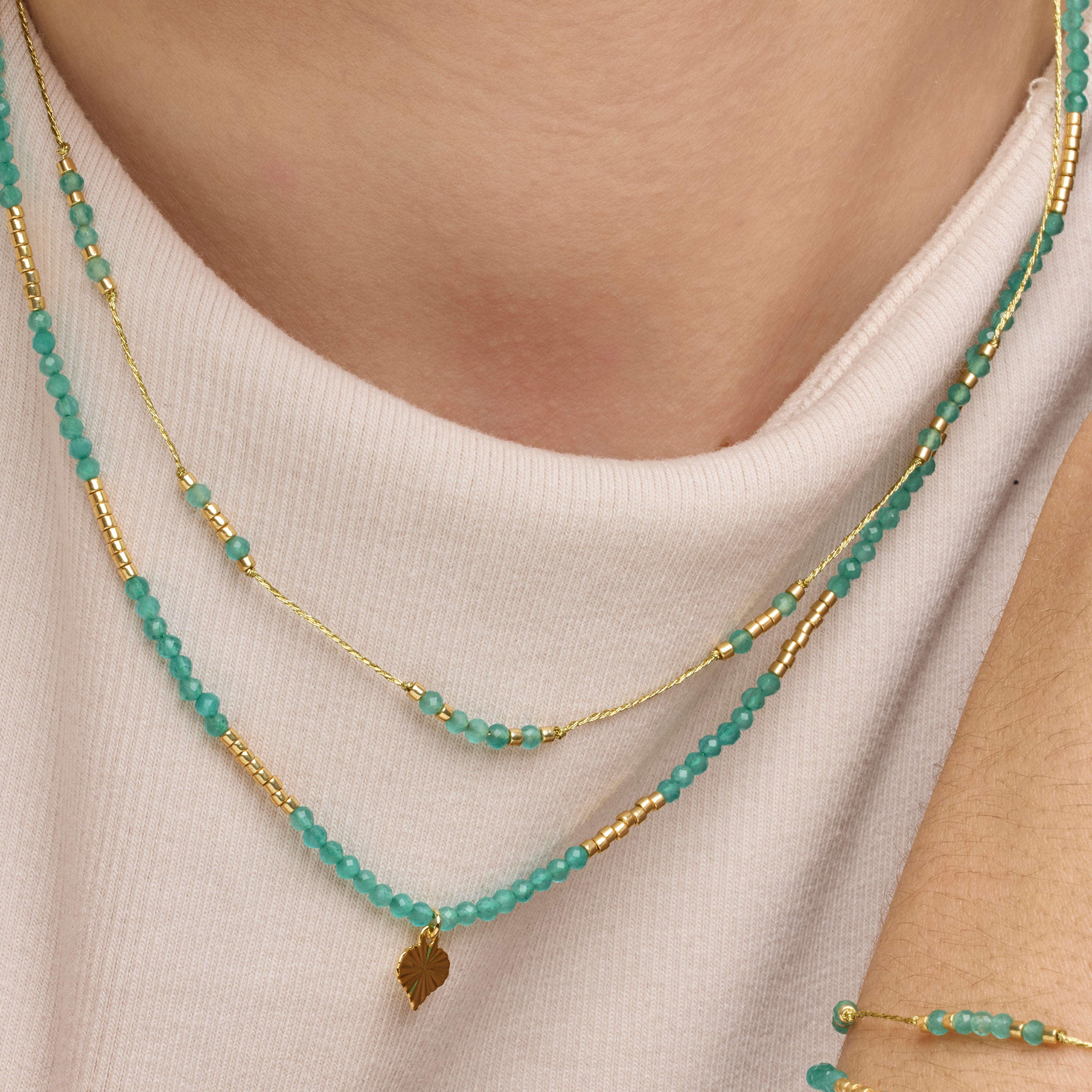 925er Silberhalskette mit grünem Kristall und 18k Gelbgold-Finish