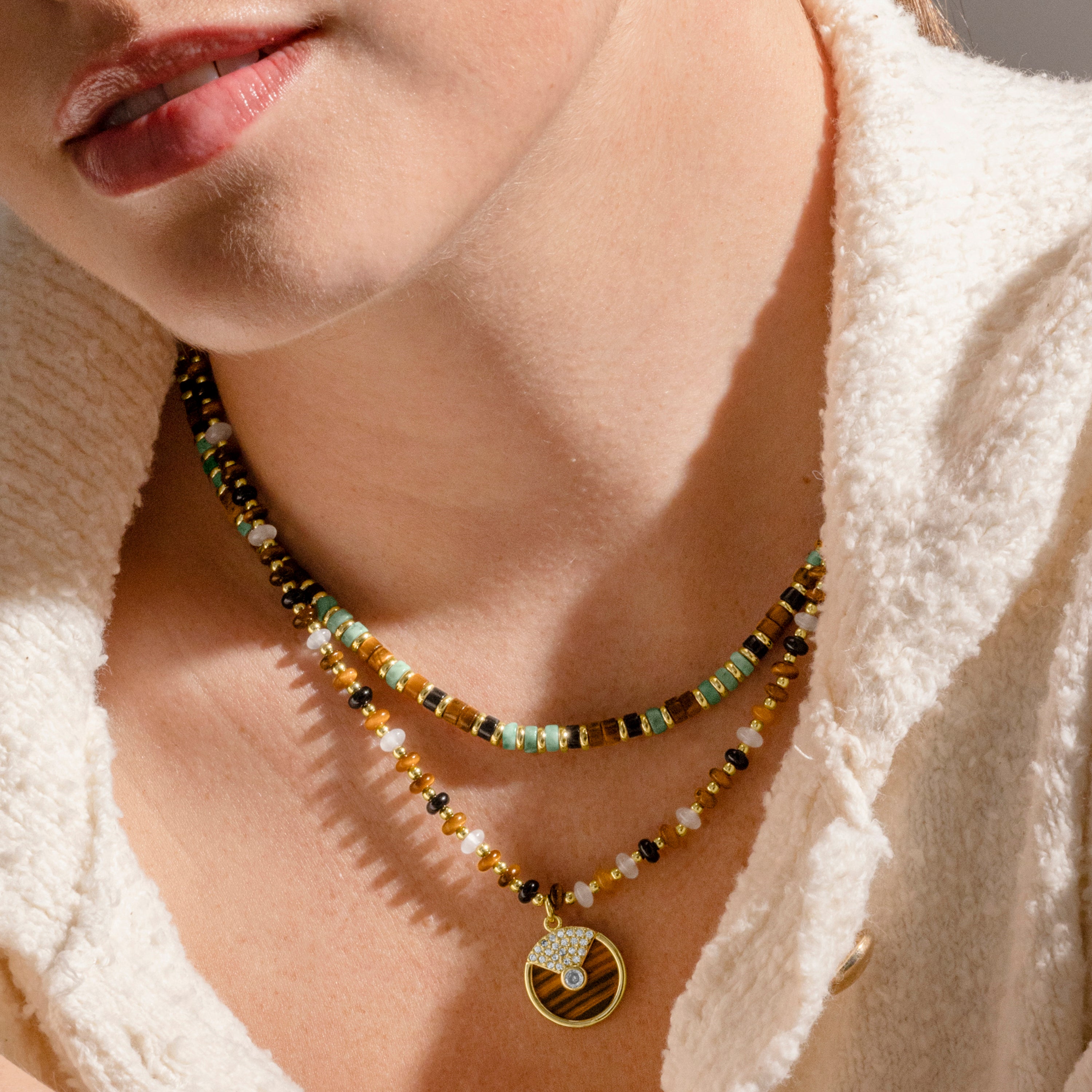 Tauchen Sie in die Sammlung "Vital Energy" ein, in der jedes Juwel von der Essenz der Natur und der kosmischen Energie durchdrungen ist. Inspiriert von der tiefen Verbindung zwischen dem Menschen und seiner Umgebung feiert diese Sammlung die Schönheit von Natursteinen und ihrer Fähigkeit, den Geist zu erhöhen.