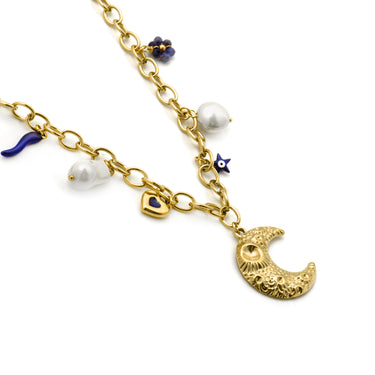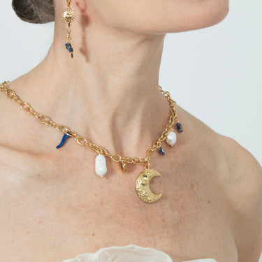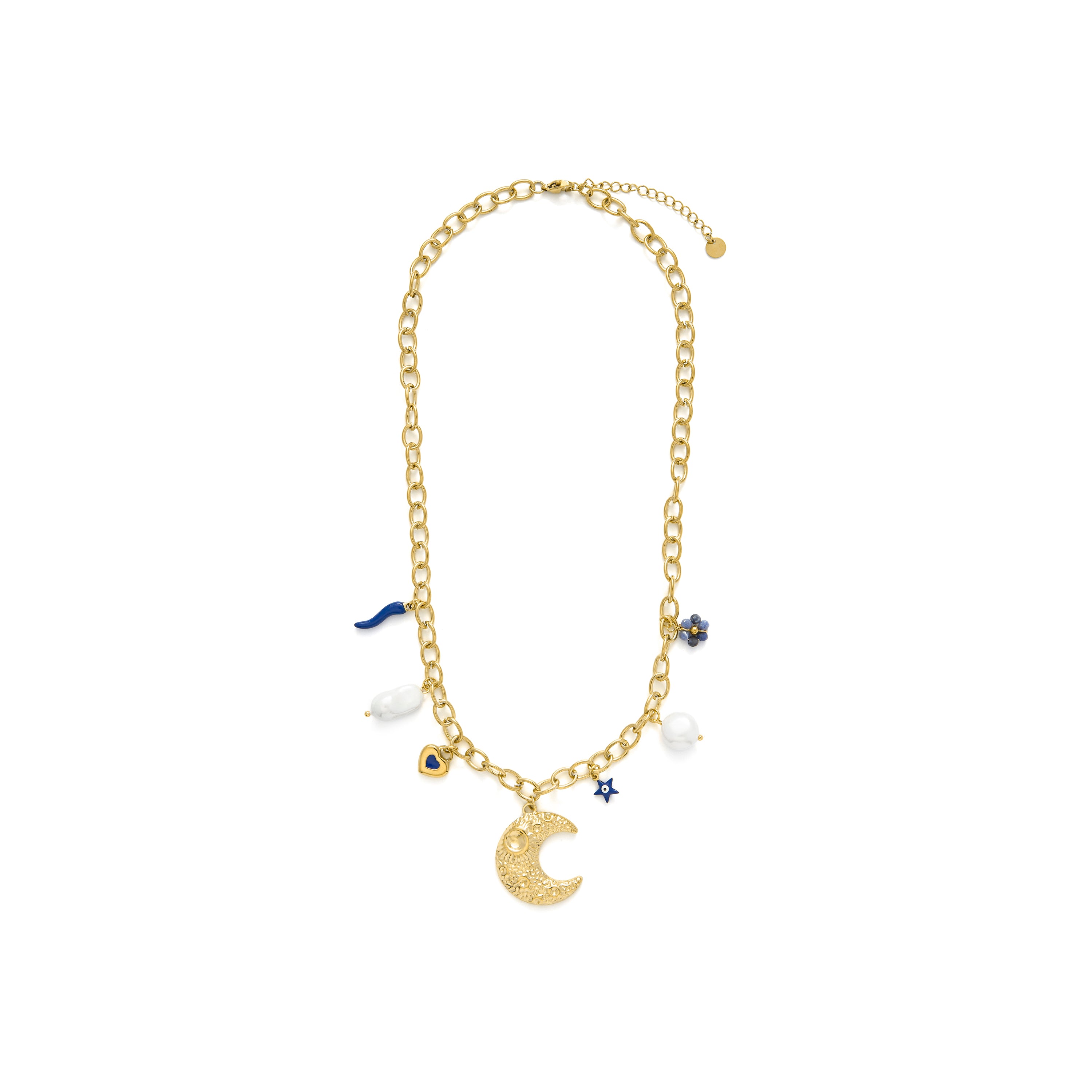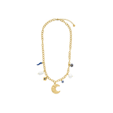 Lynou Halskette mit blauem Lack, 18k Gelbgold-Finish