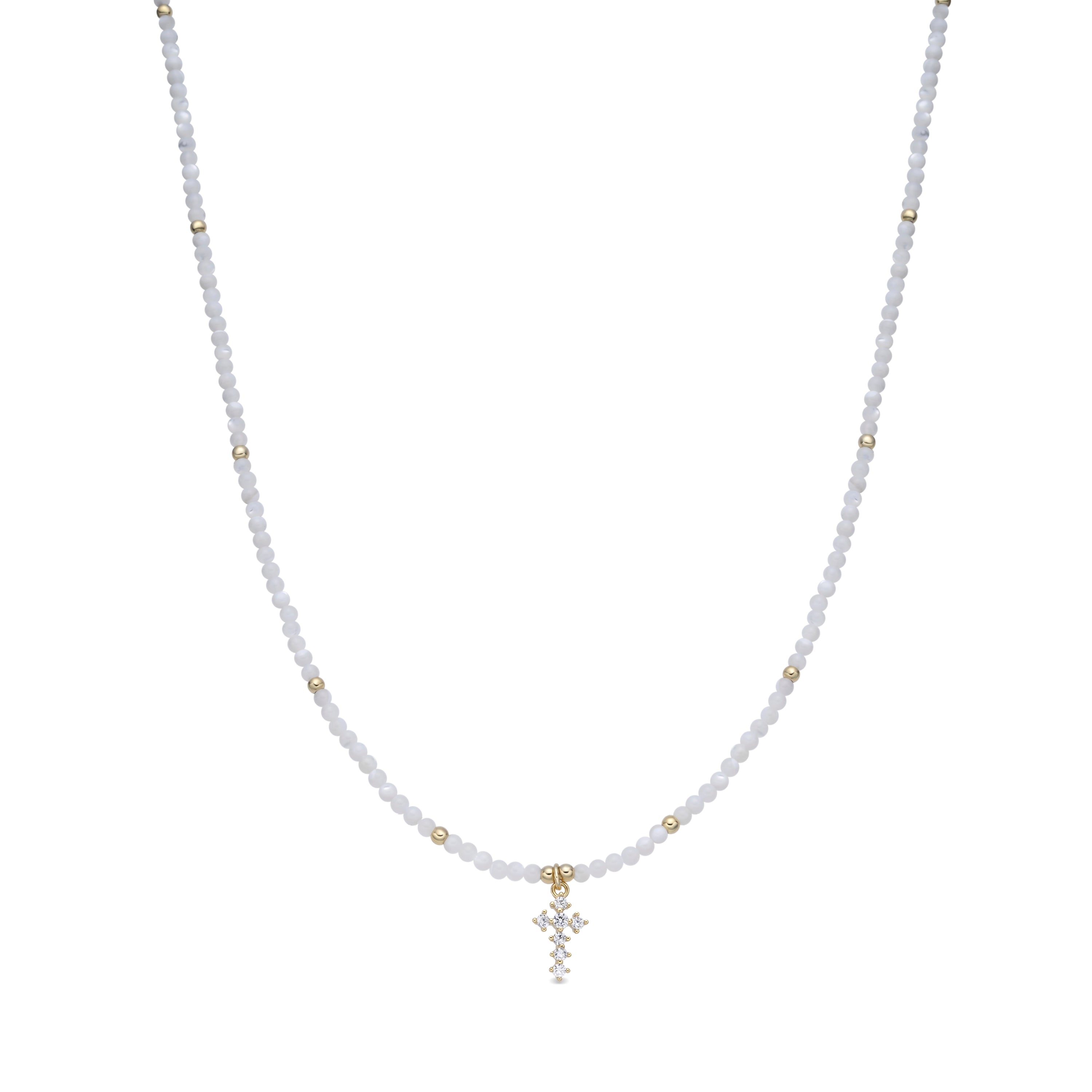 Halskette aus weißem Perlmutt mit 18k Gelbgold-Finish - Nyali