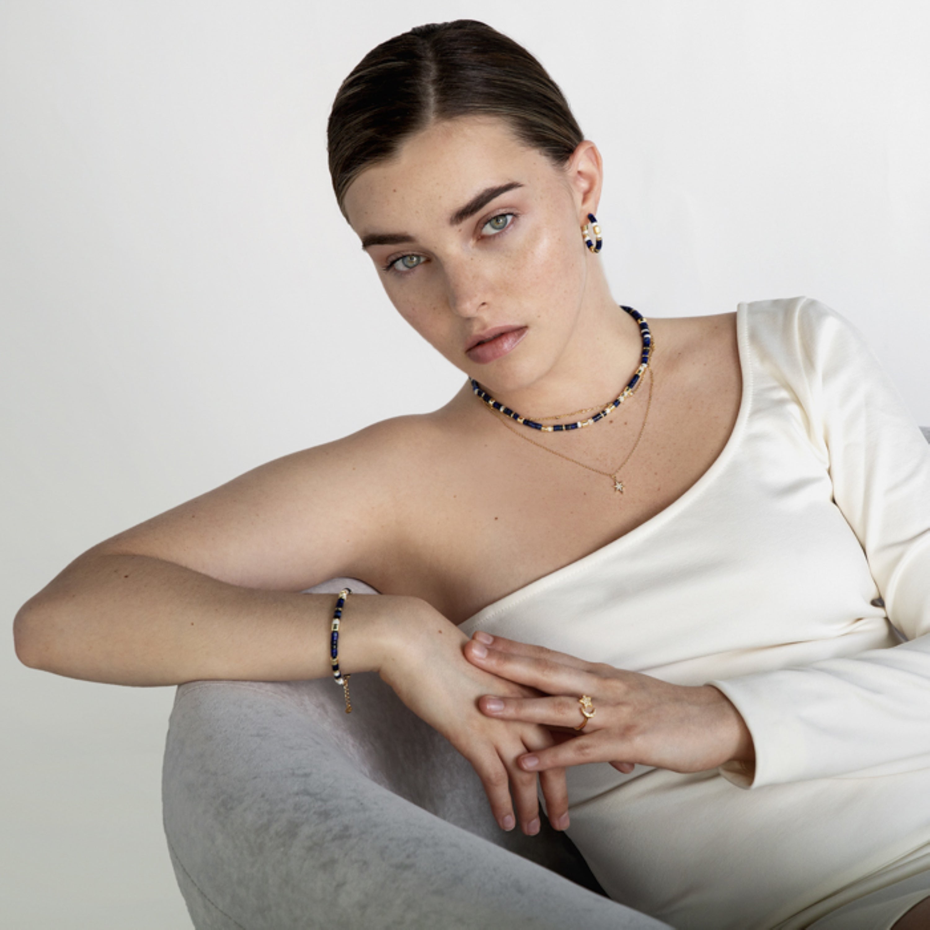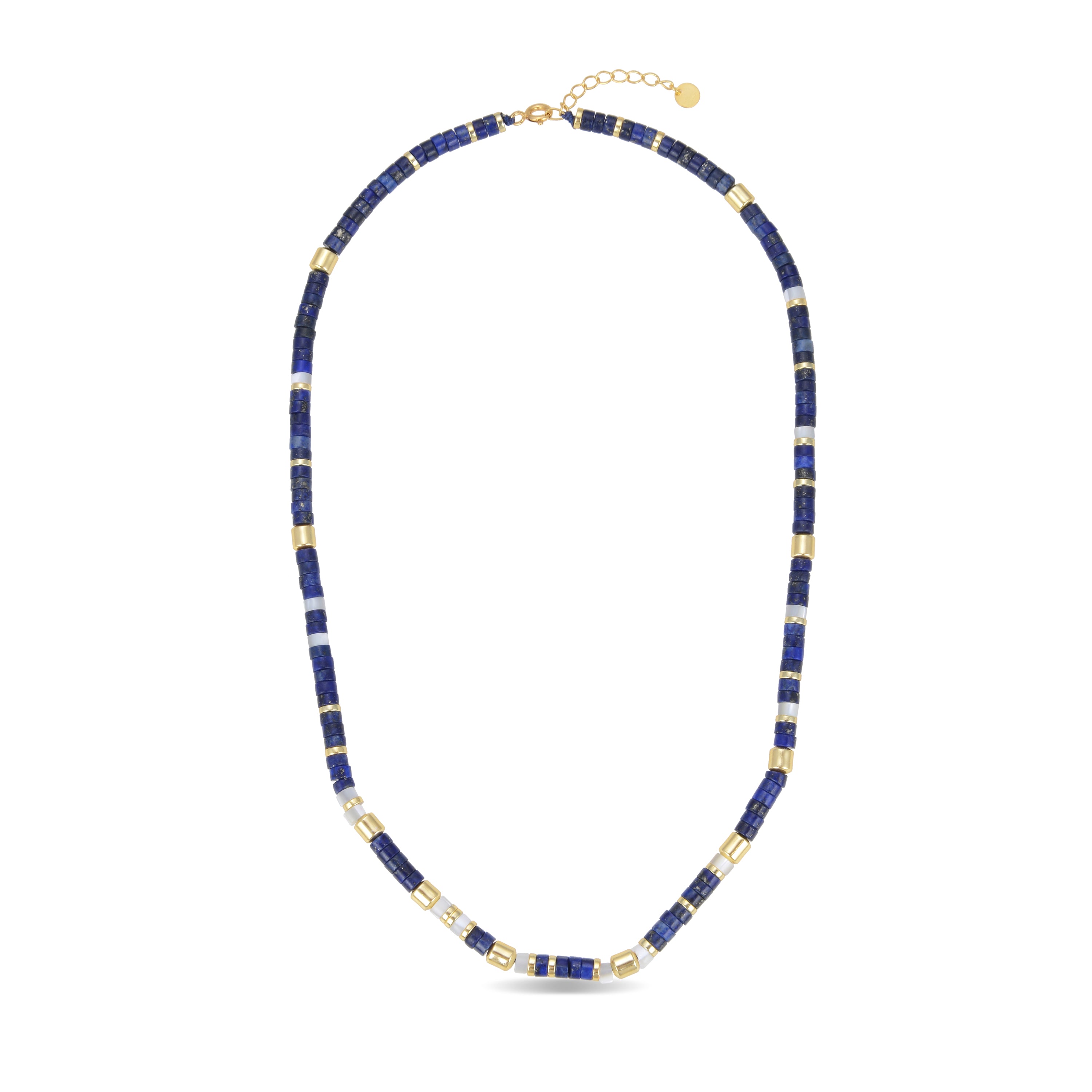 Halskette aus 925er Sterlingsilber und natürlichem Lapislazuli, veredelt mit einer 18-karätigen Gelbgoldbeschichtung. Trendy repräsentiert die Schlüsseltrends in der Modewelt. Unsere spontanste Linie, mit einem ausgeprägten Boho-Charakter und modernem Geist, konzentriert sich auf Schmuckstücke voller Farbe, bei denen der Einsatz von Natursteinen und Designs in Form von Amuletten und Talismane hervorsticht.