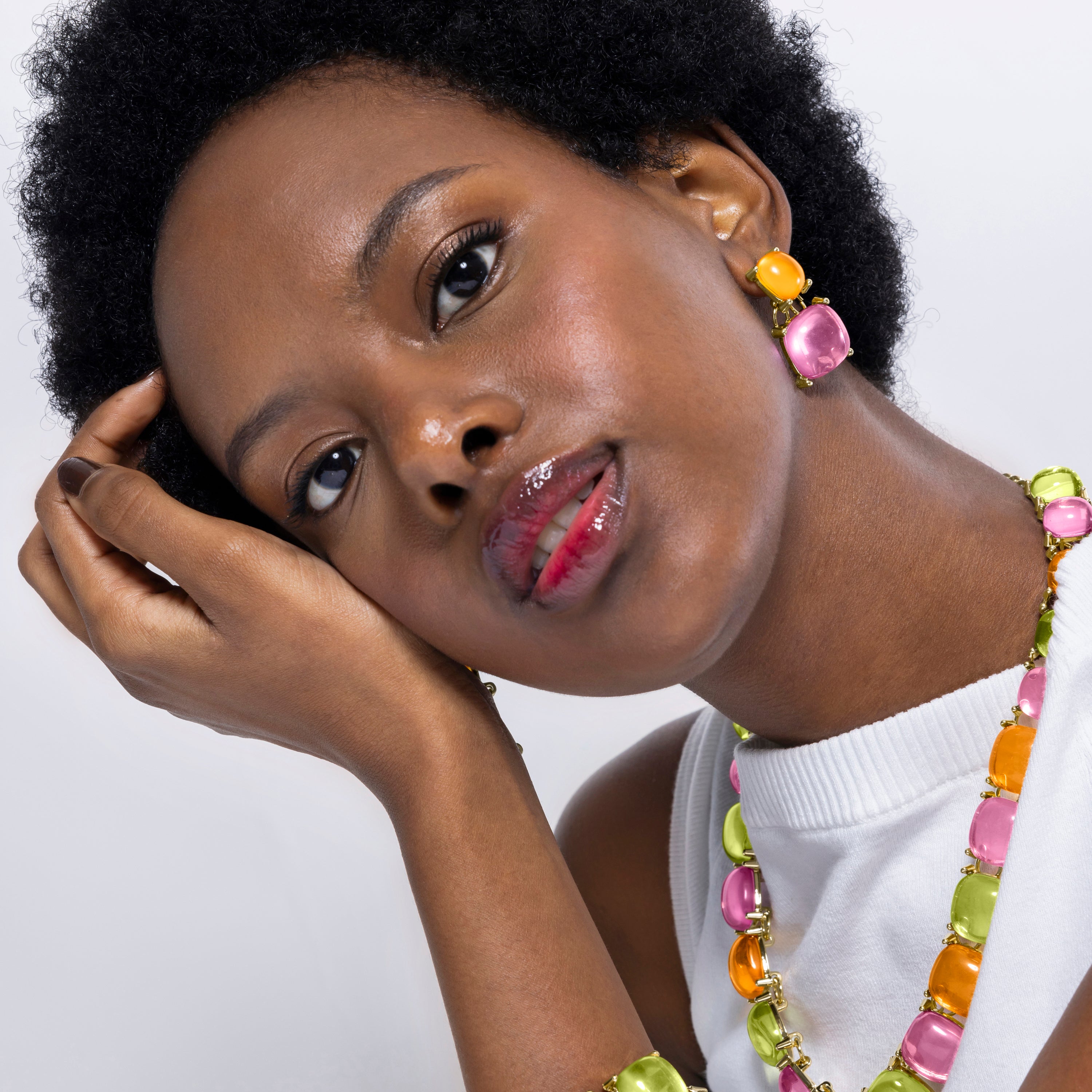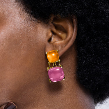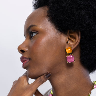 Ohrringe Azara aus mehrfarbigem Kristall mit 18-karätiger Gelbgold-Oberfläche.