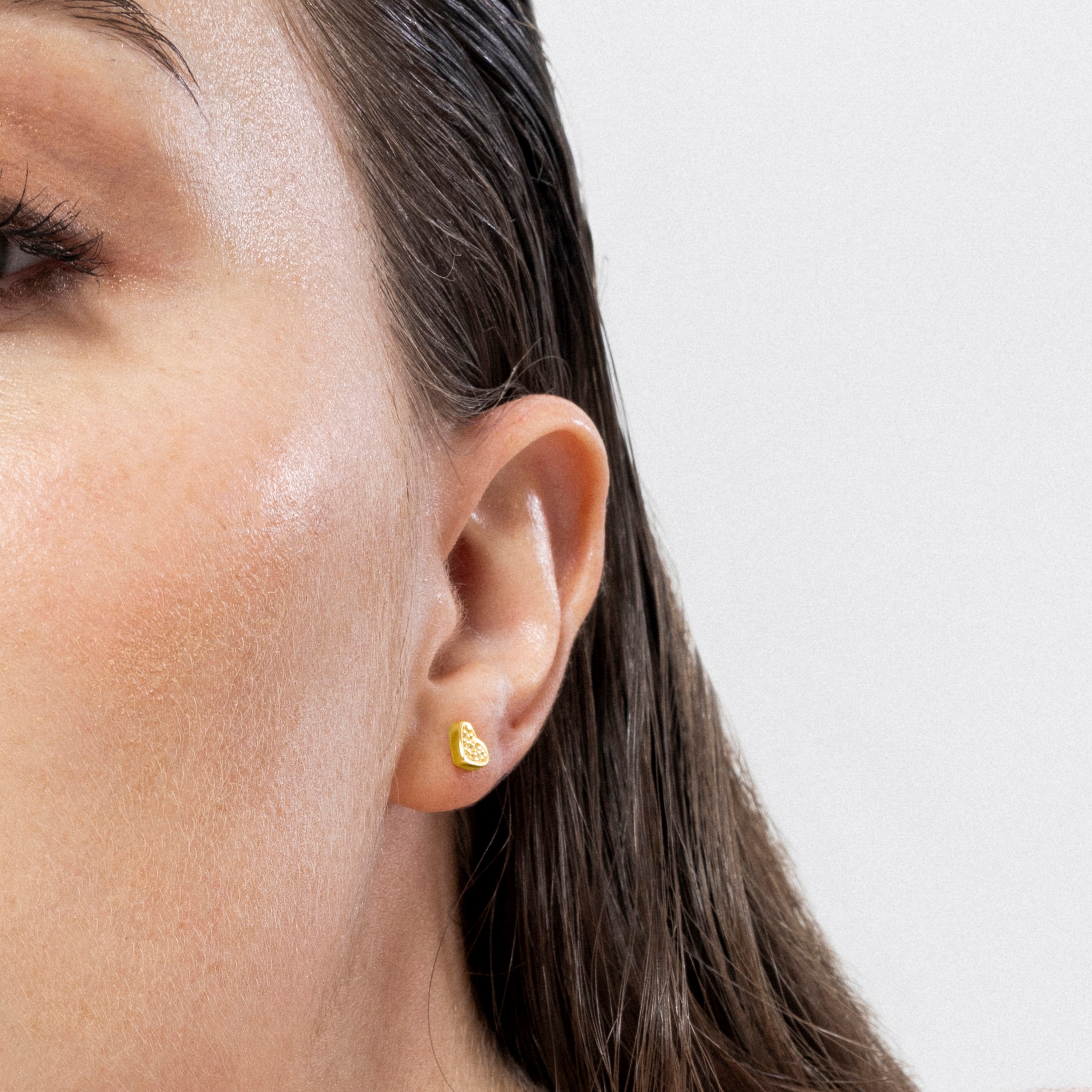 Ohrringe "Herz" aus 925er Sterlingsilber und funkelndem Zirkonia, veredelt mit 18 Karat Gelbgold. "Wünsch dir was" zeichnet sich durch jugendliche Designs aus, die voller Bedeutung und Farbe sind, originell und zugleich dezent, und die kleine Amulette sein sollen.