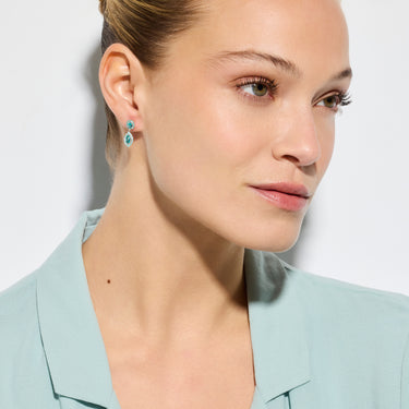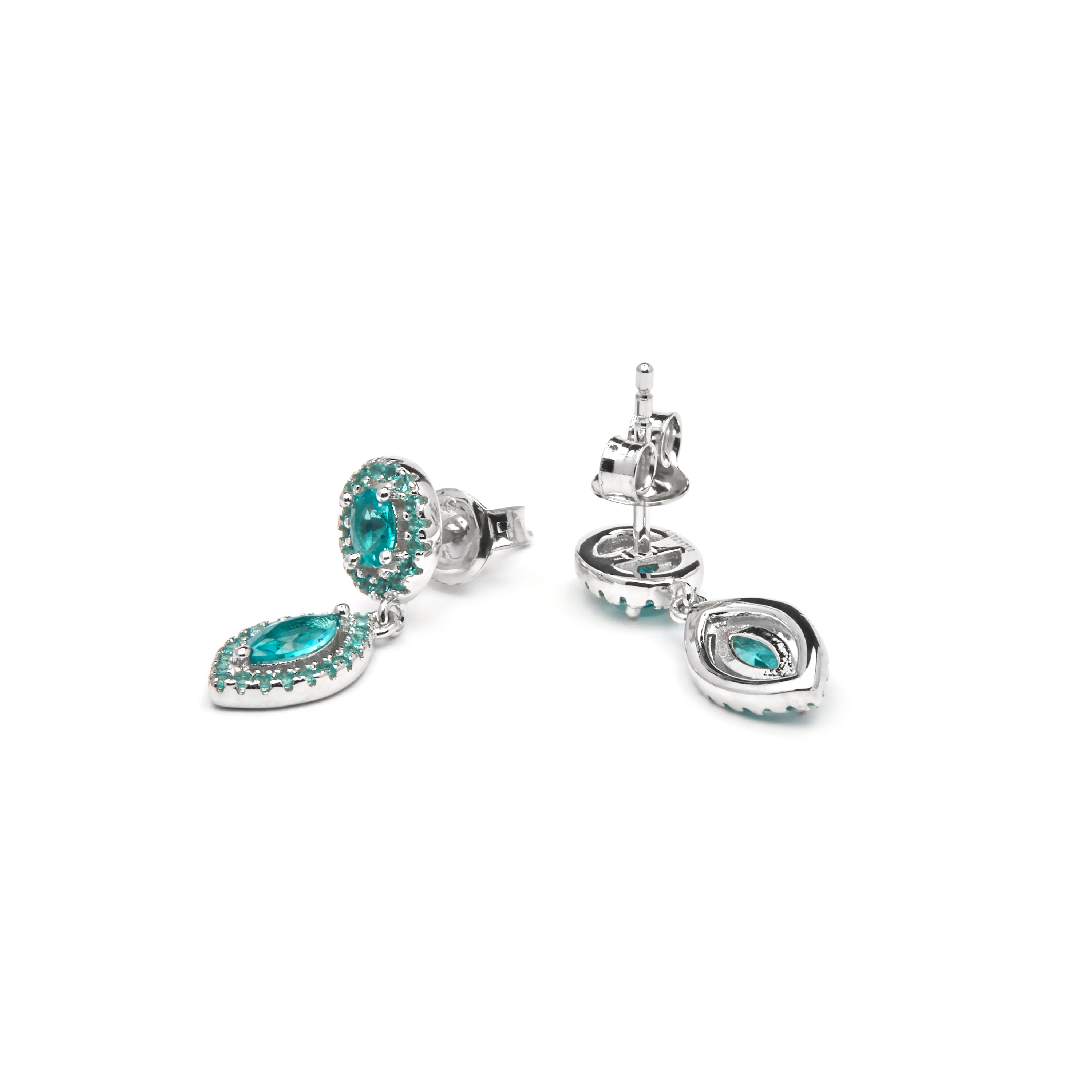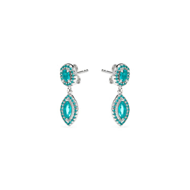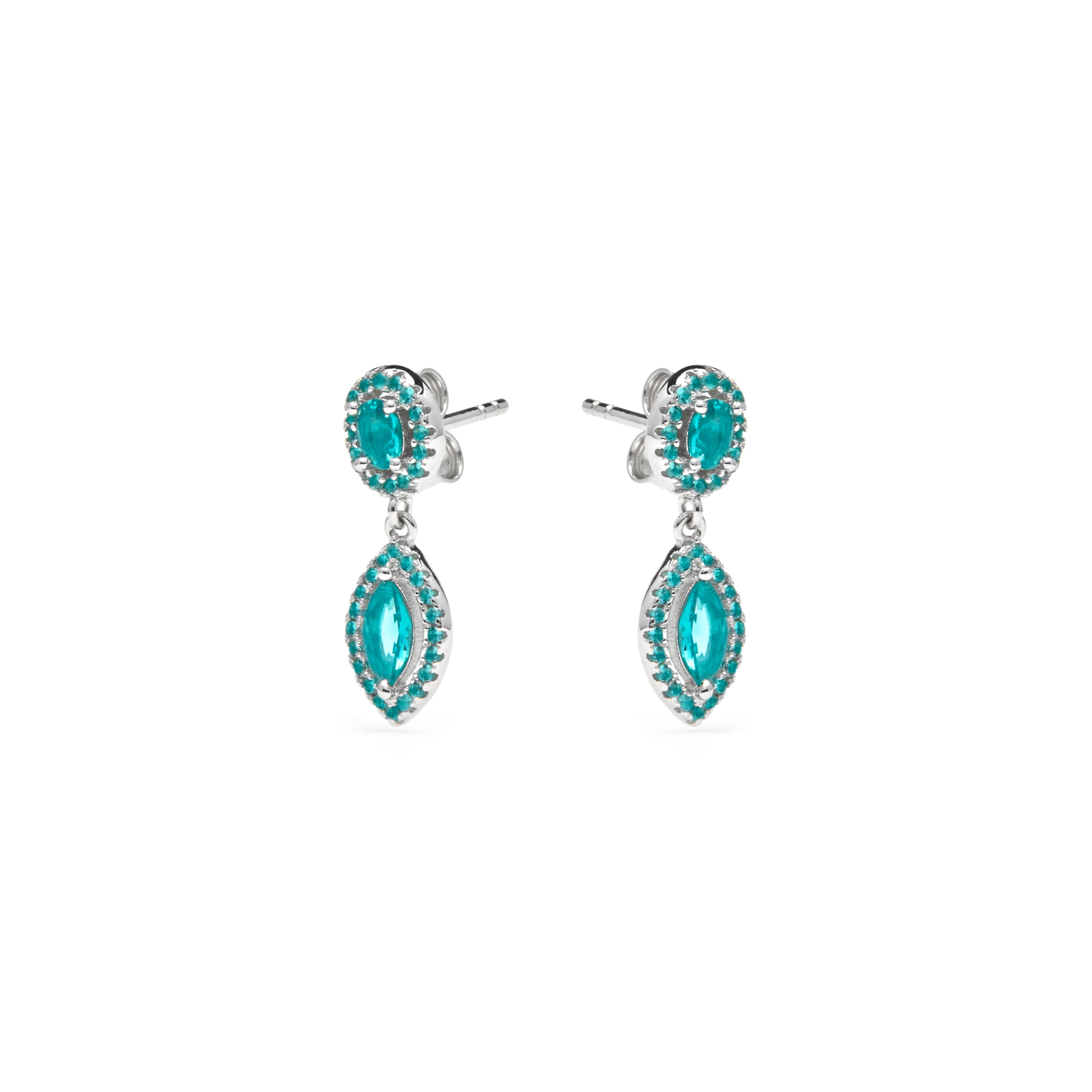 Ontary-Ohrringe aus 925er Sterlingsilber und grünem Paraiba Hydrothermalquarz mit Rhodium-Finish. Atelier vermittelt Trendbewusstsein in jedem Schmuckstück, mit Designs, die sich an die Entwicklung der Mode und der Frau angepasst haben. Es ist die perfekte Linie für einzigartige Frauen, die ihrem Alltag einen Farbtupfer verleihen möchten.