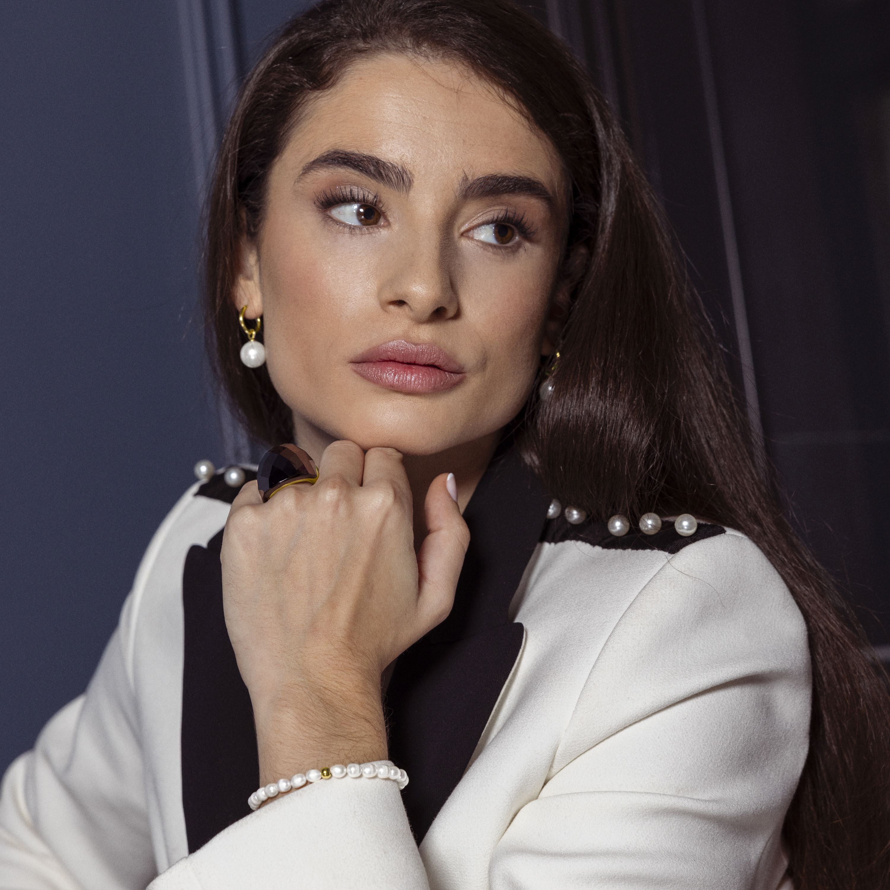 Ring Konsil aus hydrothermalem Quarz Onyx mit 18K Gelbgold-Finish. Afrika wird zur perfekten Linie für Frauen mit Persönlichkeit, die keine Angst haben, Risiken einzugehen und Stücke mit eigenem Charakter zu tragen.