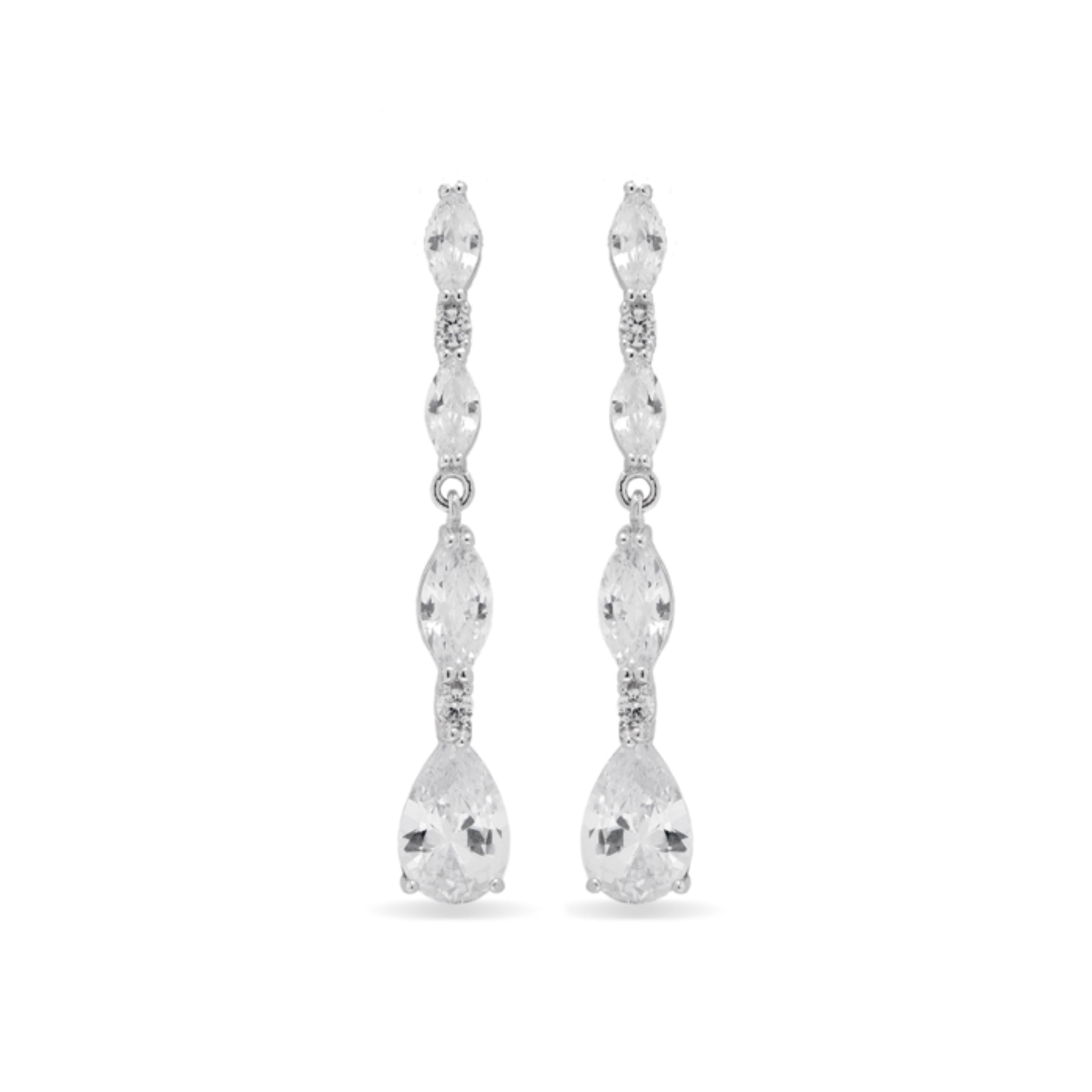 Ohrringe aus 925er Sterlingsilber mit glänzenden Zirkonia, rhodiniert - Jibki