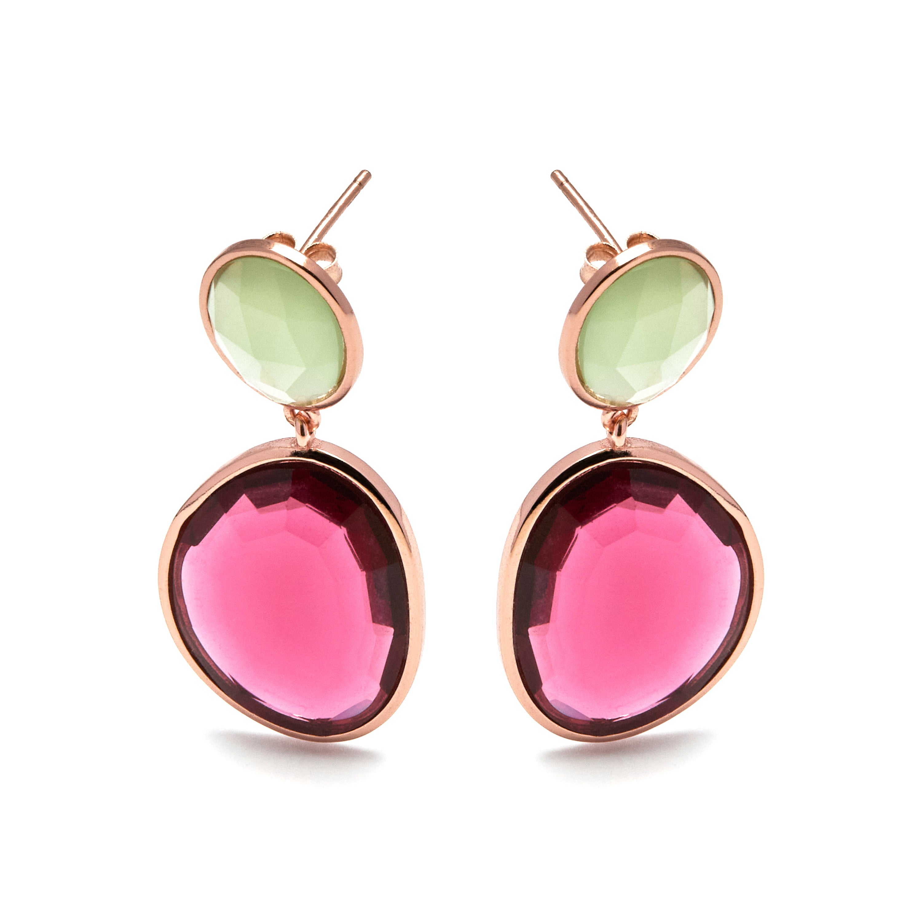 Ohrringe aus 925er Sterlingsilber mit hydrothermalem Kirschquarz, veredelt mit 18K Roségold - Anjoan
