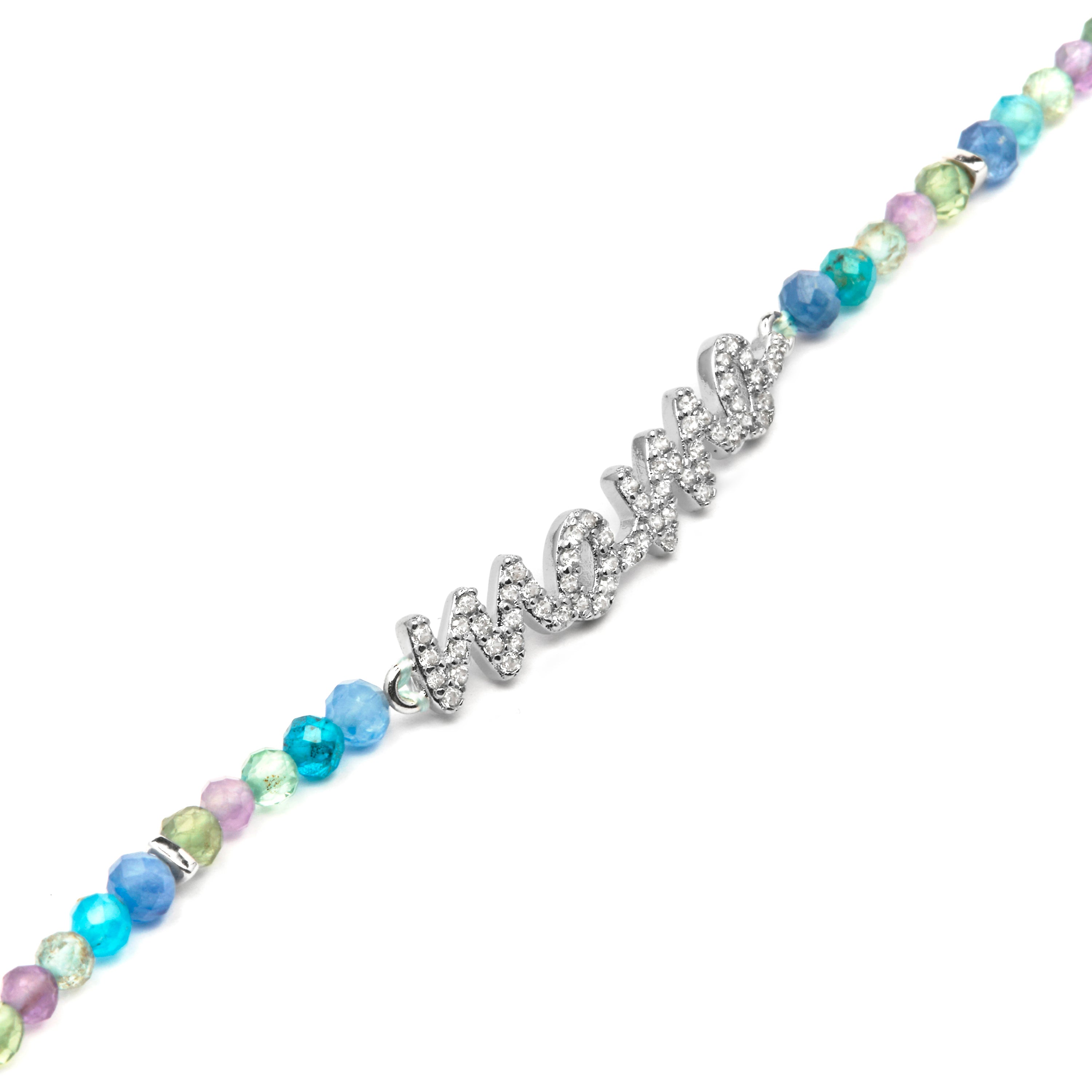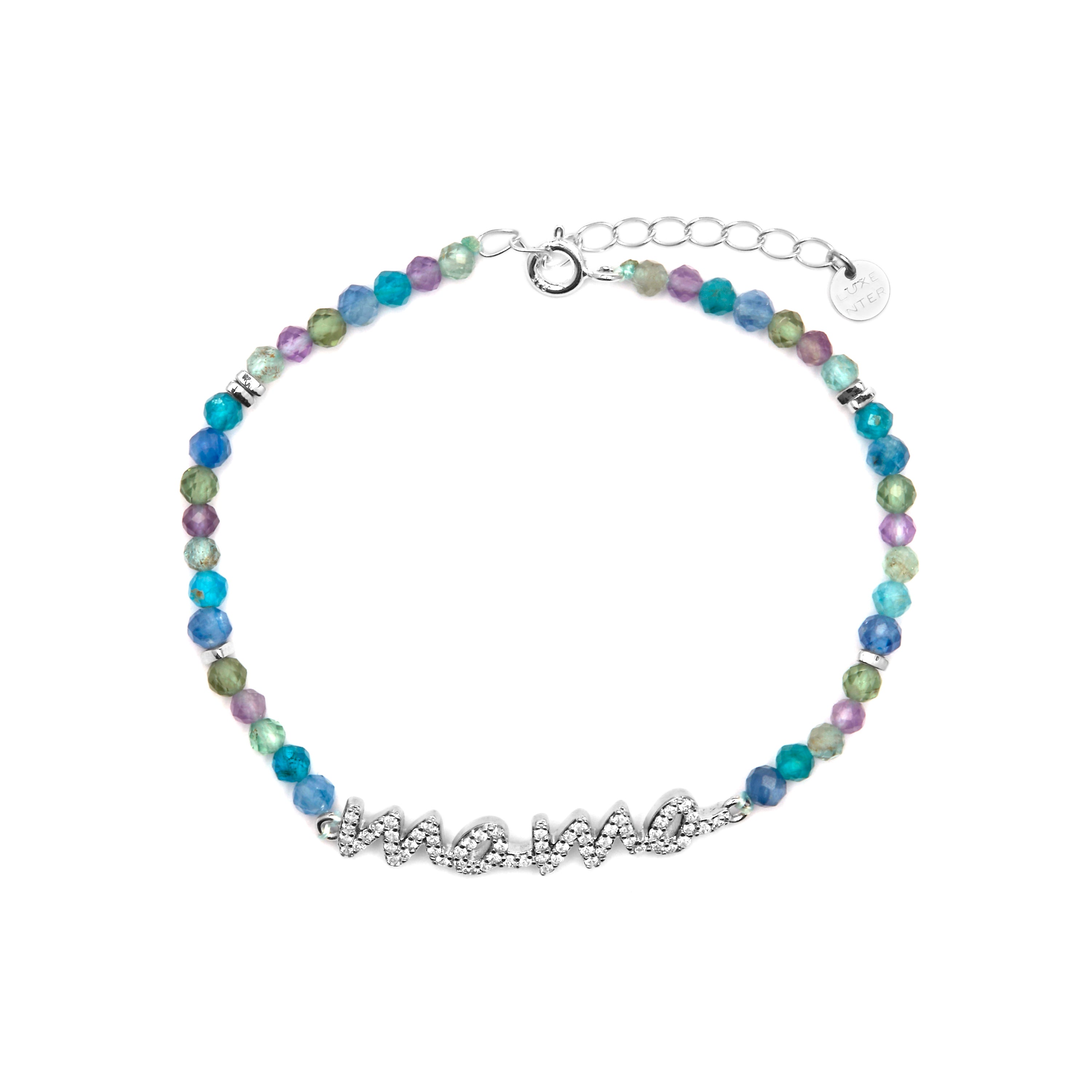 925er Sterlingsilberarmband mit dunkelblauem Kristall, rhodiniert - Mama