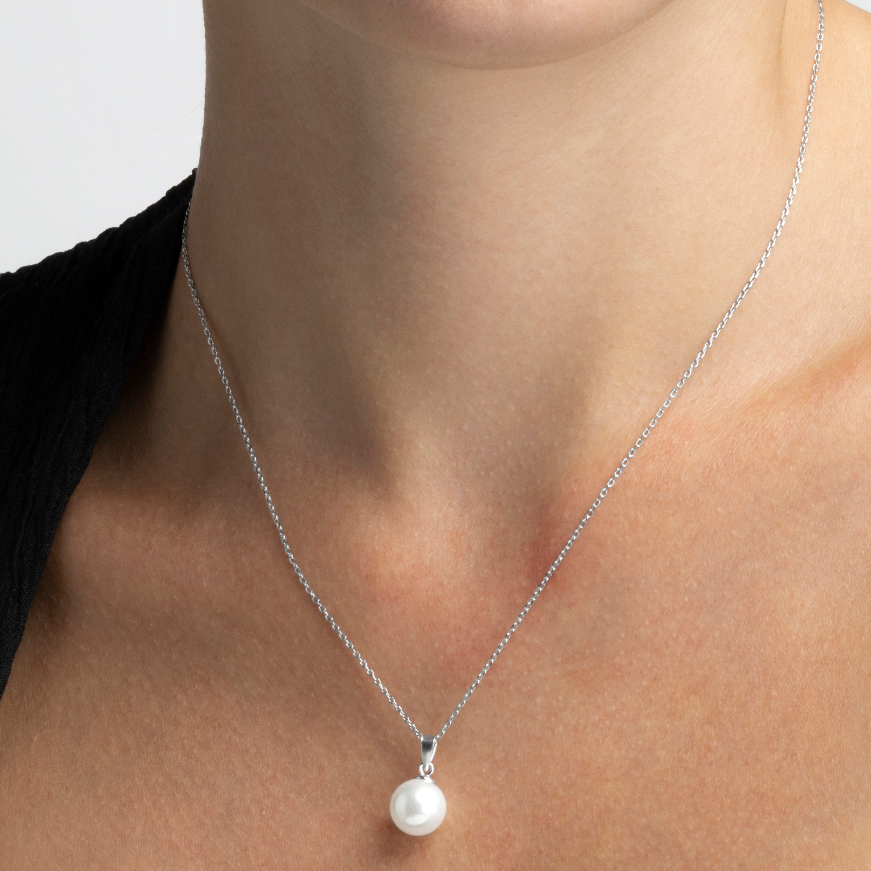925er Sterlingsilber-Halskette mit weißer Perle, rhodiniert - Kugel