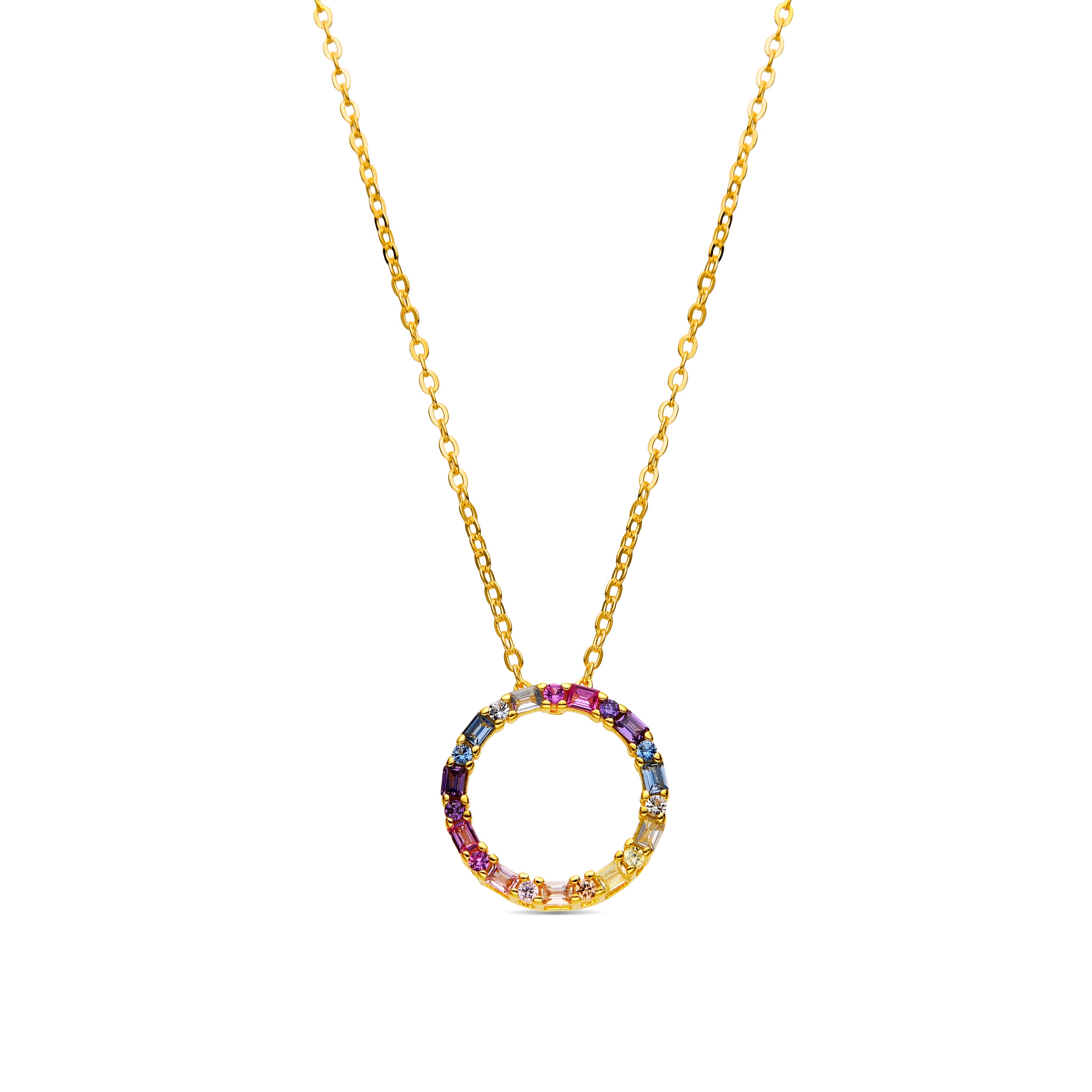 925er Sterlingsilber-Halskette mit mehrfarbigen Zirkonia, 18k Gold-Finish - Hrius