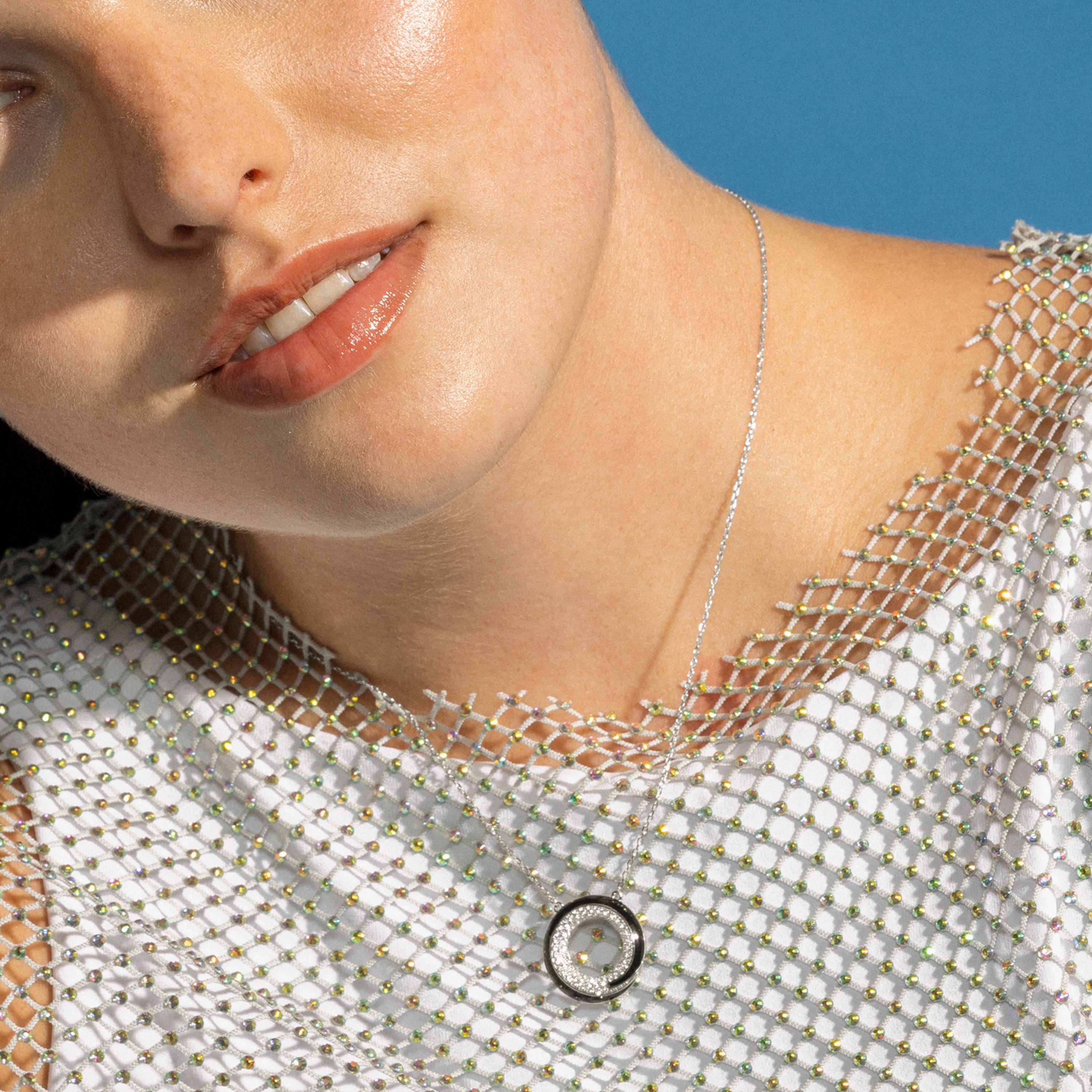 Kragen Darkbe aus 925er Sterlingsilber und schwarz lackiert, mit Rhodium-Finish. Momente zum Strahlen kombiniert perfekt zeitlose Designs mit innovativeren Schmuckstücken. Eleganter und raffinierter Schmuck, um bei besonderen Anlässen zu glänzen.